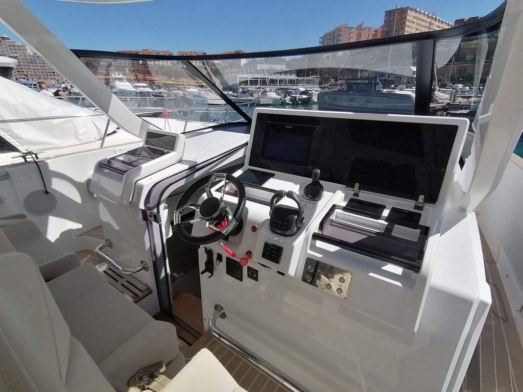 Contametri catena (Quick), Display (Volvo multifunction 7" display), DSC vhf (Simrad VHF RS100, with VHF antenna and splitter for FM/AIS), Joystick (Volvo), Pilota automatico (Simrad with electronic compass), Plotter (Simrad multifunction display NSS evo3-12" at dashboard with DST transducer), Quadro comandi (12V main electric panel), 3 Sedile Copilota.