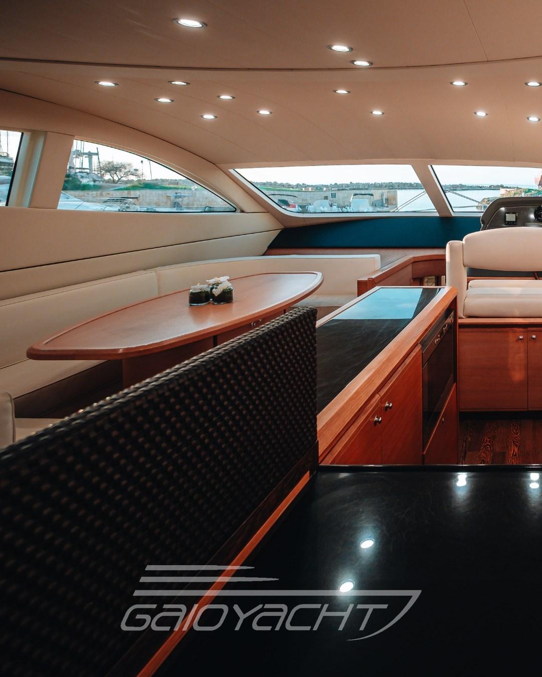 Allarme fumo/gas, Allarme motore, Allarme sentina, Ancora (Da sostituire), Apertura Vano Motore Elettrica, Auto Dynamic Trim Interceptor, Autoclave, Auto-Trim, Camminamenti laterali in teak, Doccia esterna, Doppia timoneria, Faro orientabile, Flap elettrici, Gruette, Gruette per tender, Impianto antincendio, Indicatori Flaps, Luci di cortesia, Passerella, Piattaforma, Pompa di Scarico del Serbatoio Acque Reflue, Porta ingresso, Porta laterale, Pozzetto Teak, Presa 220V banchina, Presa acqua banchina, Ripetitore strumentazione, Salpa Ancore Idraulico, Scaletta da bagno, Selle per Tender (Predisposizione), Tavolo pozzetto, Tromba, Tuga in teak, Winch tonneggio di poppa.