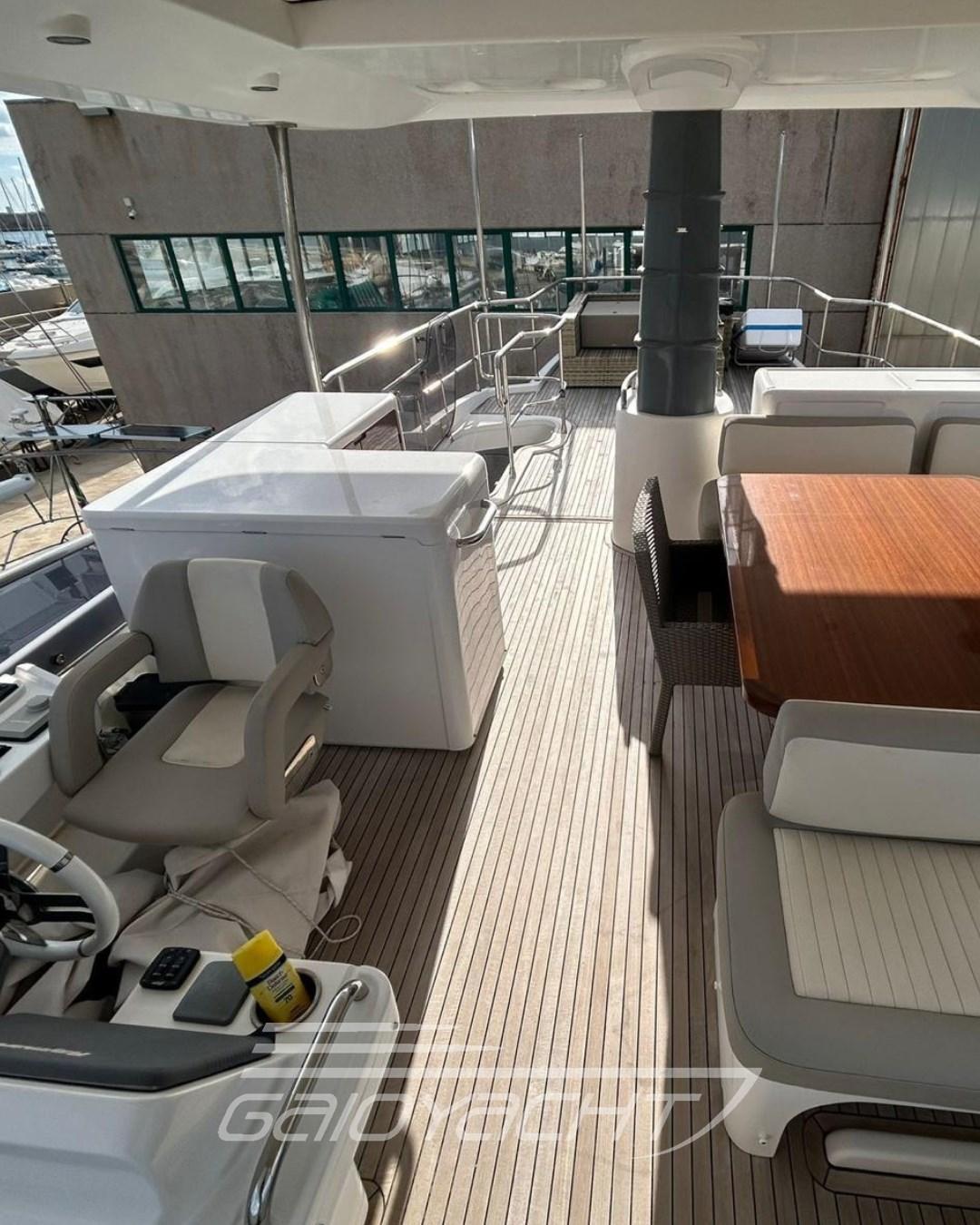 Easy Docking; Sistema di aggancio facile; Accensione motori; Display controllo motori; Controllo flap trim; Telecamera termica; Watermaker; N. 2 cantinetta refrigerante per vini; Televisore; N2 vproiettori sul flybridge; Silestone sui controsoffitti (Cucina e bagni).