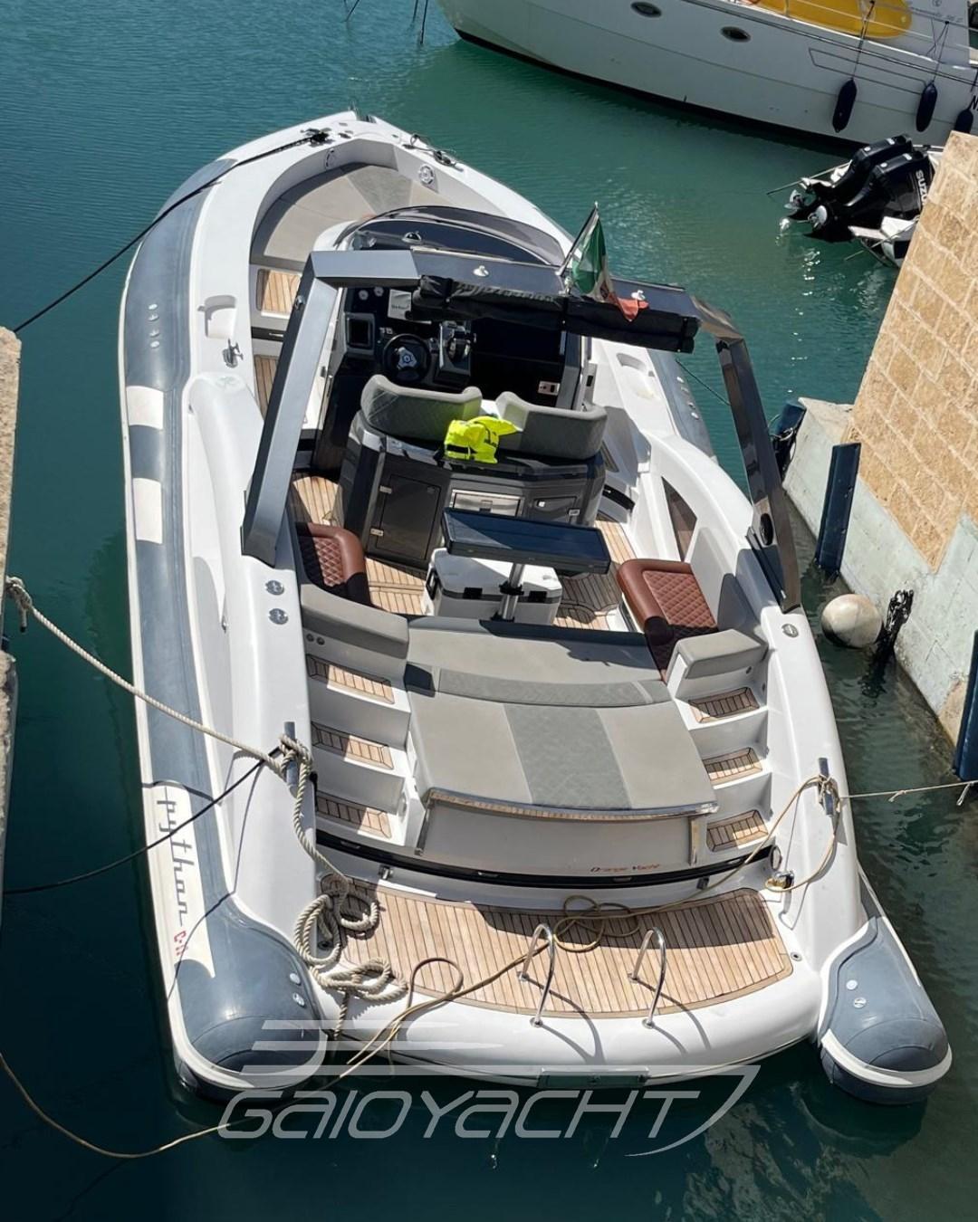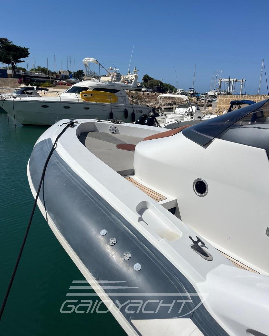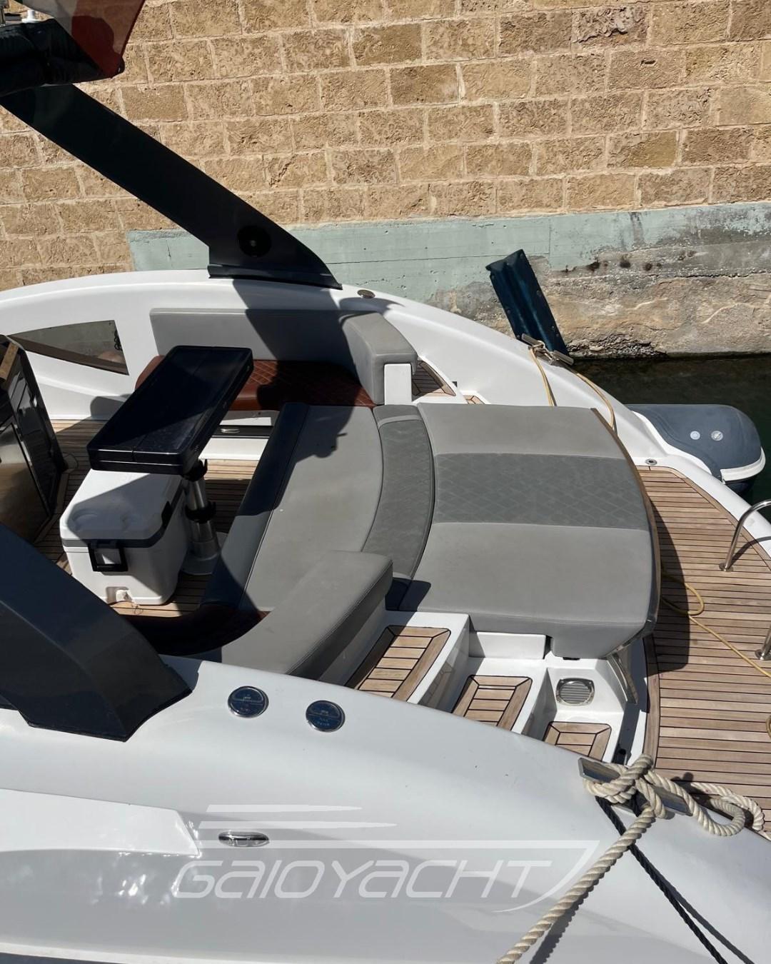 Manette elettroniche e sincronizzate; Flap idraulici; Generatore di corrente; Indicatori flap; Led specchio di poppa; Tripla sentina con pompa centrale di sentina automatica; Ampio divano con tavolo pozzetto; Chaise Longue; Piano cottura esterno; Copertura totale invernale; Impianto audio; Oblò interni a sfioroo sull'acqua .