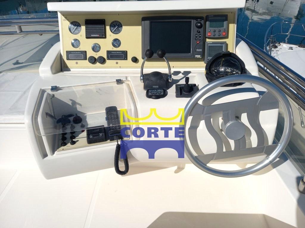 Angolo barra, Comando motori elettronico, 2 Display (Volvo Penta), GPS (Geonav), Pilota automatico (Raymarine), Plotter (Geonav), Radio VHF (Shipmate), Sedile Copilota.
