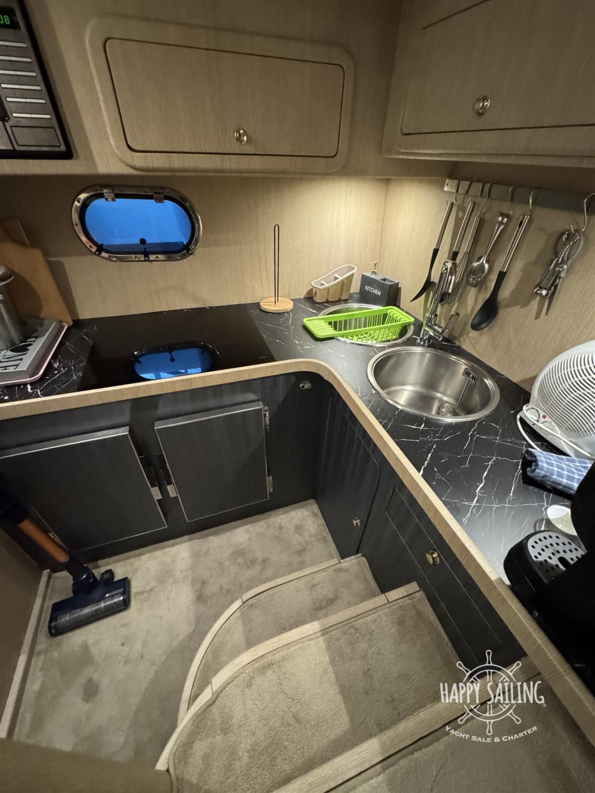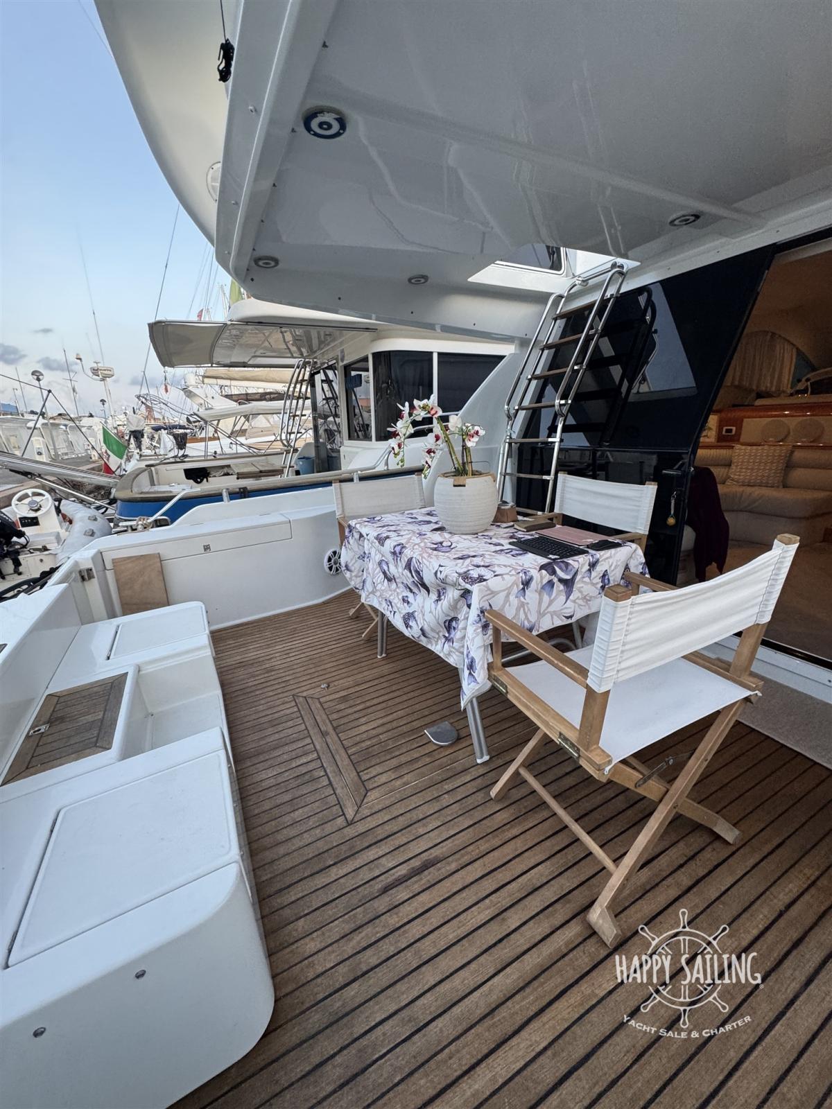 Autoclave, Doccia esterna, Doppia timoneria, Flap fissi, Flap idraulici, Lavaggio catena, Luci di cortesia, Passerella, Piattaforma, Pompa di sentina automatica, Pozzetto Teak, Presa 220V banchina, Raddrizzatore, Salpa Ancore Elettrico, Scaletta da bagno, Tavolo pozzetto.
