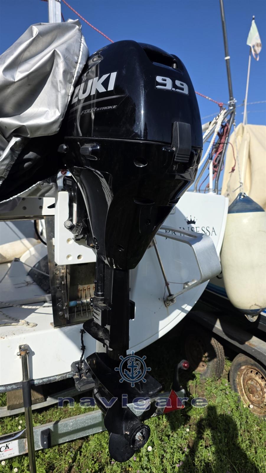 Ecoscandaglio (fishfinder), GPS (GPS Grafico Garmin, con profondimetro), Pilota automatico (Simrad TP10).