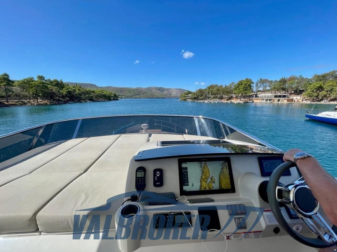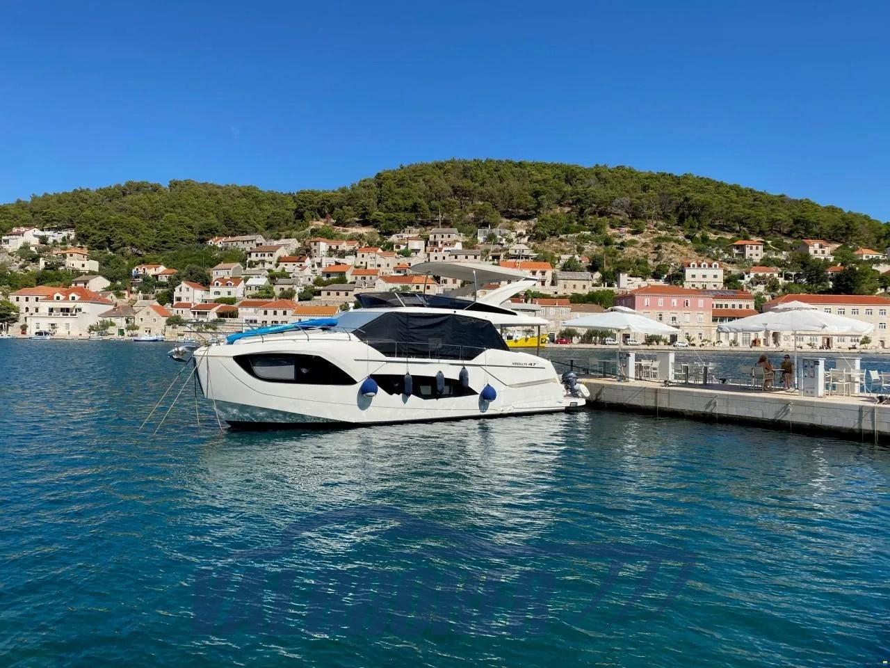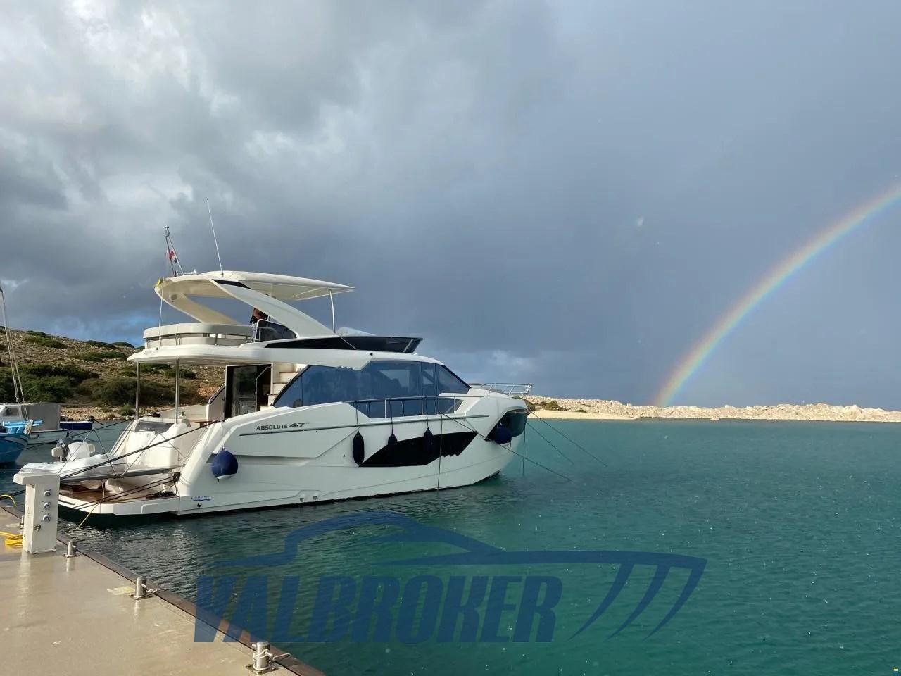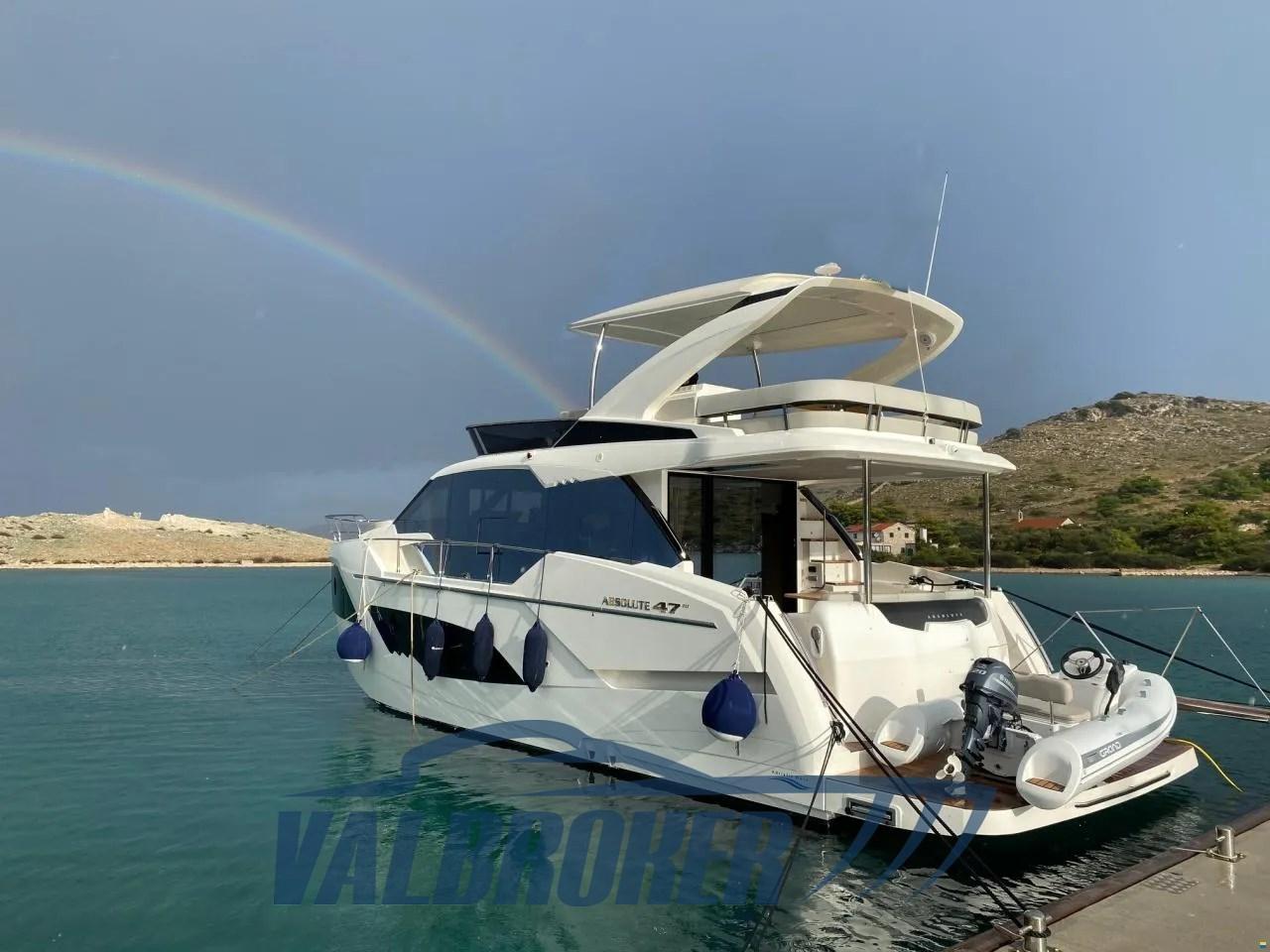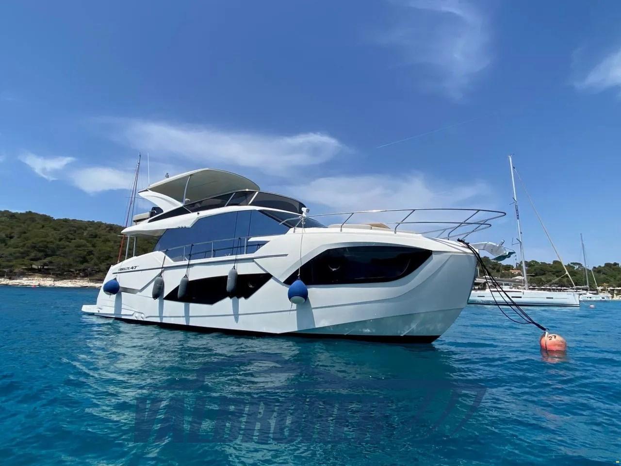 Flybridge del cantiere italiano Absolute Yachts, progettato per massimizzare spazio e luminosità. Motorizzato con 2x480 HP Volvo Penta D6-IPS650. Dispone di 3 cabine: armatoriale a prua, VIP a centro barca e una doppia con letti singoli e 2 bagni.