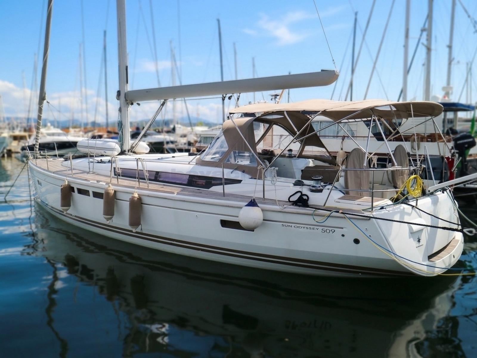 Jeanneau Sun Odyssey 509 usato, con randa avvolgibile nel boma e genoa Quantum Membrane avvolgibile, una barca pensata per chi vuole vivere la crociera in modo completo, con spazi generosi e grande facilità di gestione anche con equipaggio ridotto. La presenza della trinchetta e del Code 0 amplia le possibilità di navigazione, rendendola versatile e sempre pronta a sfruttare ogni condizione. A bordo si percepisce subito un’impostazione orientata al comfort: tre cabine matrimoniali, due bagni e una dinette trasformabile permettono di ospitare famiglia e amici senza sacrifici, mentre l'aria condizionata (caldo/freddo), il riscaldamento Eberpascher e il generatore garantiscono autonomia e benessere anche lontano dal porto. L’elica di prua e i winch elettrici rendono le manovre semplici e meno impegnative, così da godersi davvero il tempo in mare. La piattaforma di poppa elettrica e il pozzetto in teak aumentano la vivibilità esterna, perfetta per momenti di relax e convivialità, mentre bimini e cappottina permettono di utilizzare la barca in ogni stagione, garantendo maggiore protezione nel pozzetto. L'elettronica Raymarine è completa di pilota automatico, VHF, GPS, Radar e AIS per una navigazione sicura.
