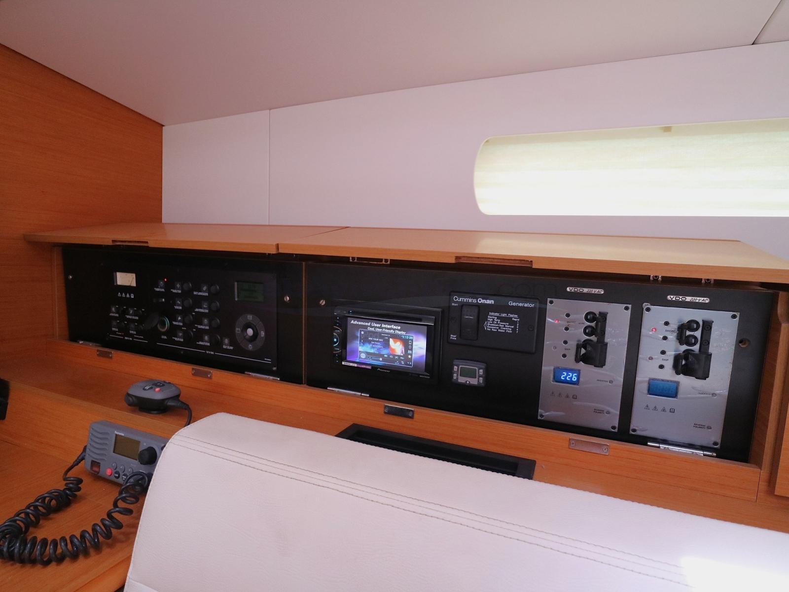 AIS (Raymarine 650), Antenna radar, Bussola (2), Contametri catena, GPS (Raymarne hybrid touch), Pilota automatico (con telecomando), Radio VHF (Raymarine 55E).