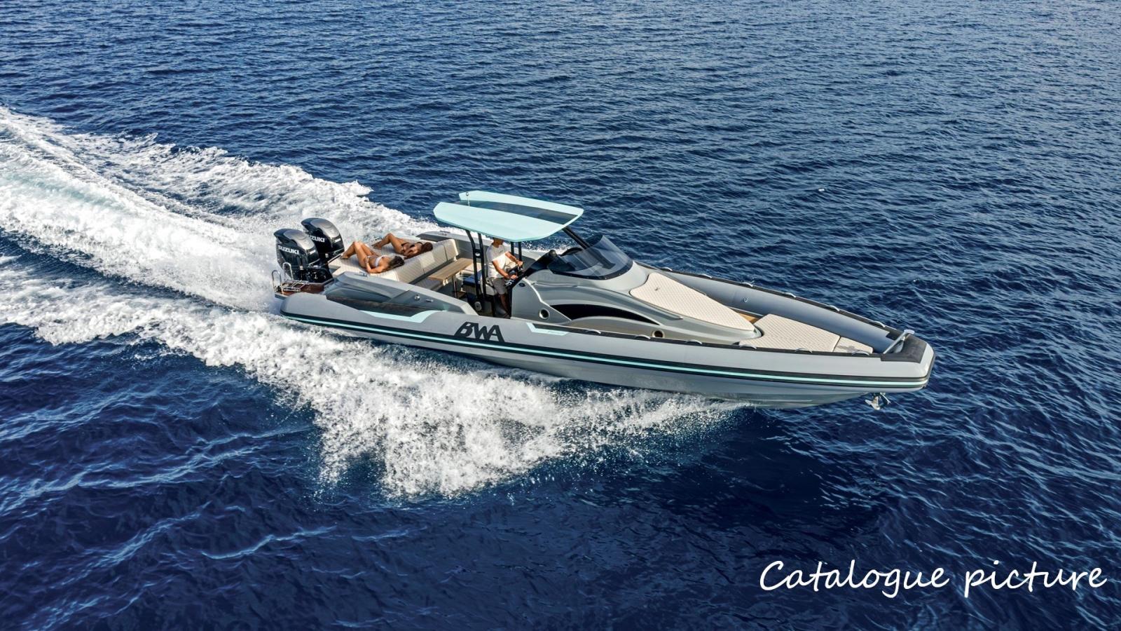Motorizzato con 2 x Honda V8 da 350 hp, rappresenta l’espressione più evoluta del maxi-RIB sportivo: prestazioni elevate, navigazione stabile e grande sicurezza anche alle alte velocità, unite a un comfort di bordo sorprendente.