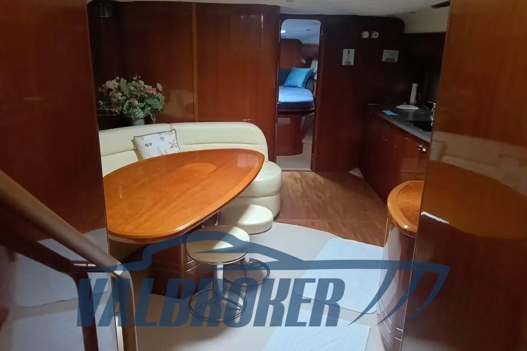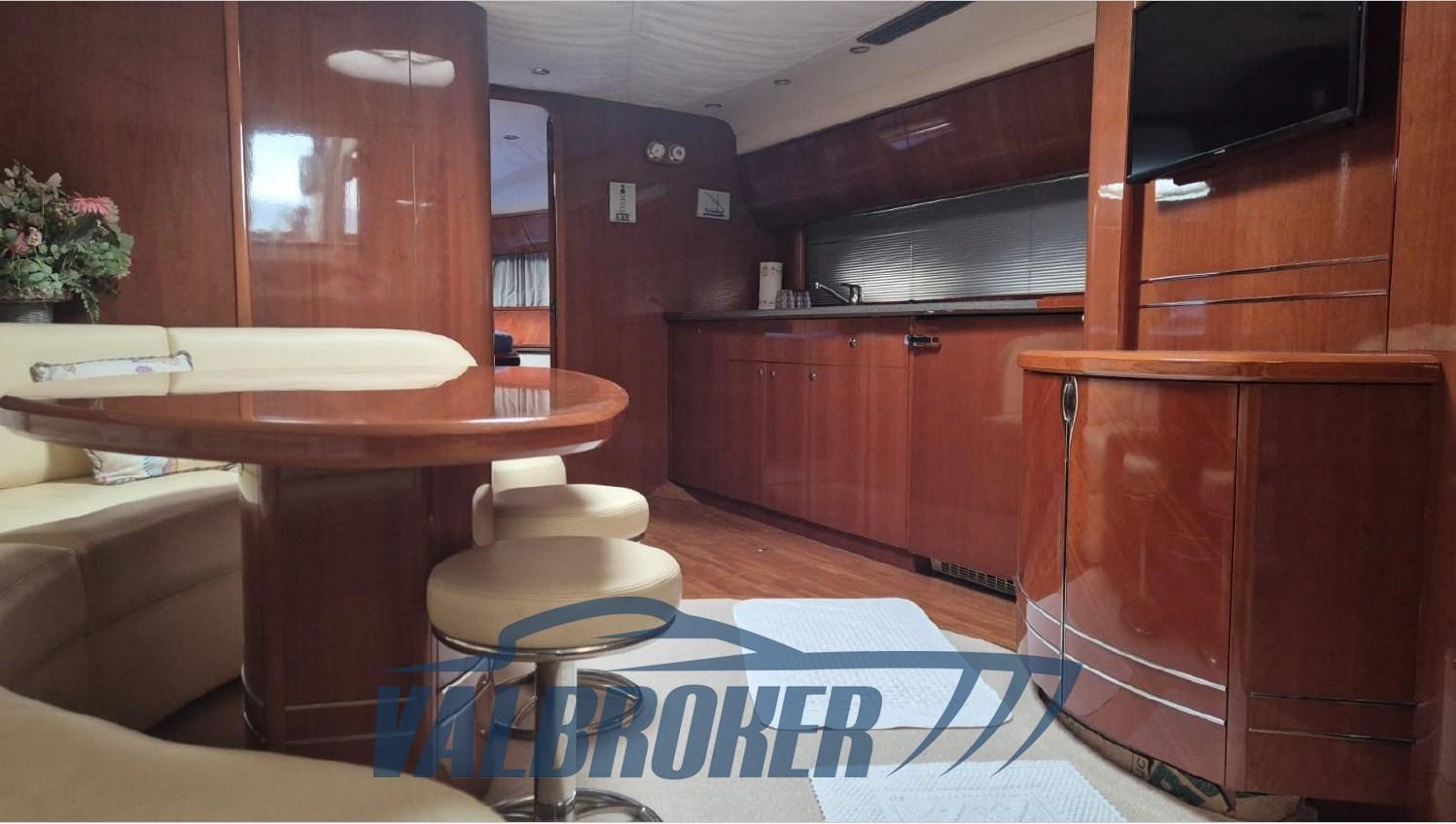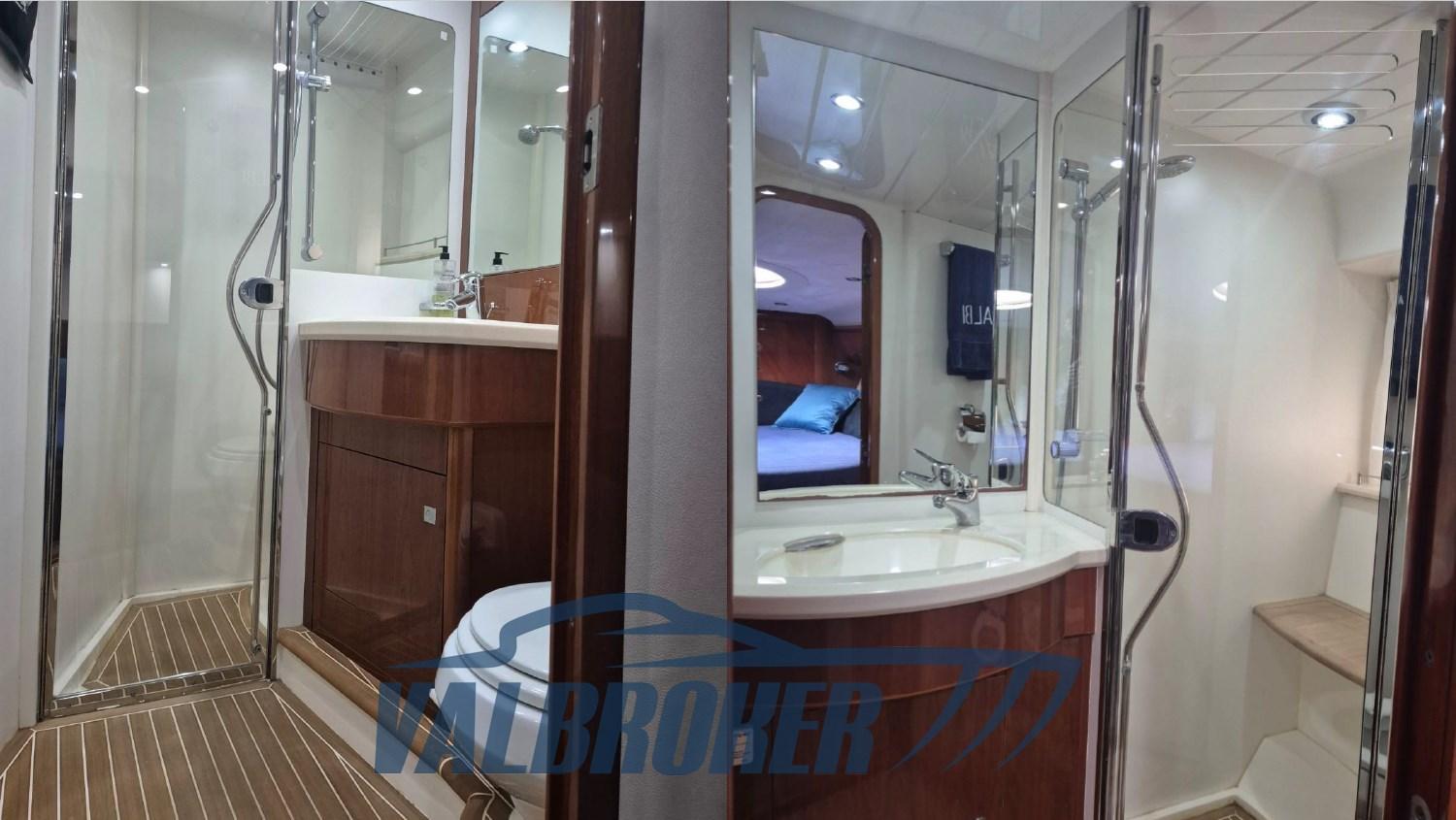 Yacht sportivo del produttore britannico Princess Yachts. Motorizzato 2x MAN in linea d'asse. Sottocoperta sono presenti tre cabine: una matrimoniale a prua, una matrimoniale a poppa ed una con i letti a castello.