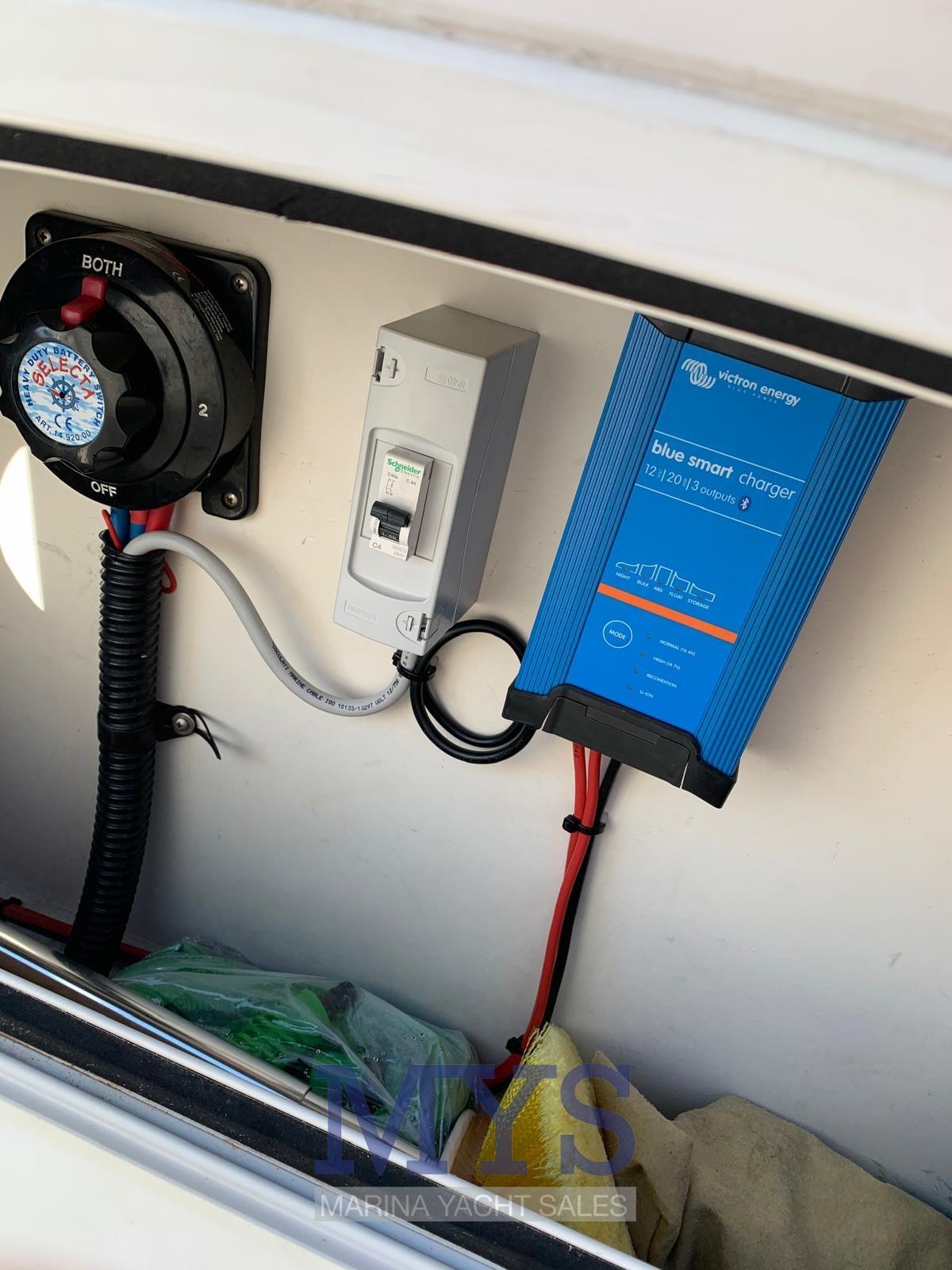 Allarme motore, Allarme sentina, Alternatore, Ancora (con catena), Autoclave, 2 Batterie, Doccia esterna, Fissaggio dell’ancora, Piattaforma, Pompa di sentina automatica, Pompa di sentina manuale, Porta ingresso, Presa 220V banchina, Salpa Ancore Elettrico, Scaletta da bagno, Tavolo pozzetto.