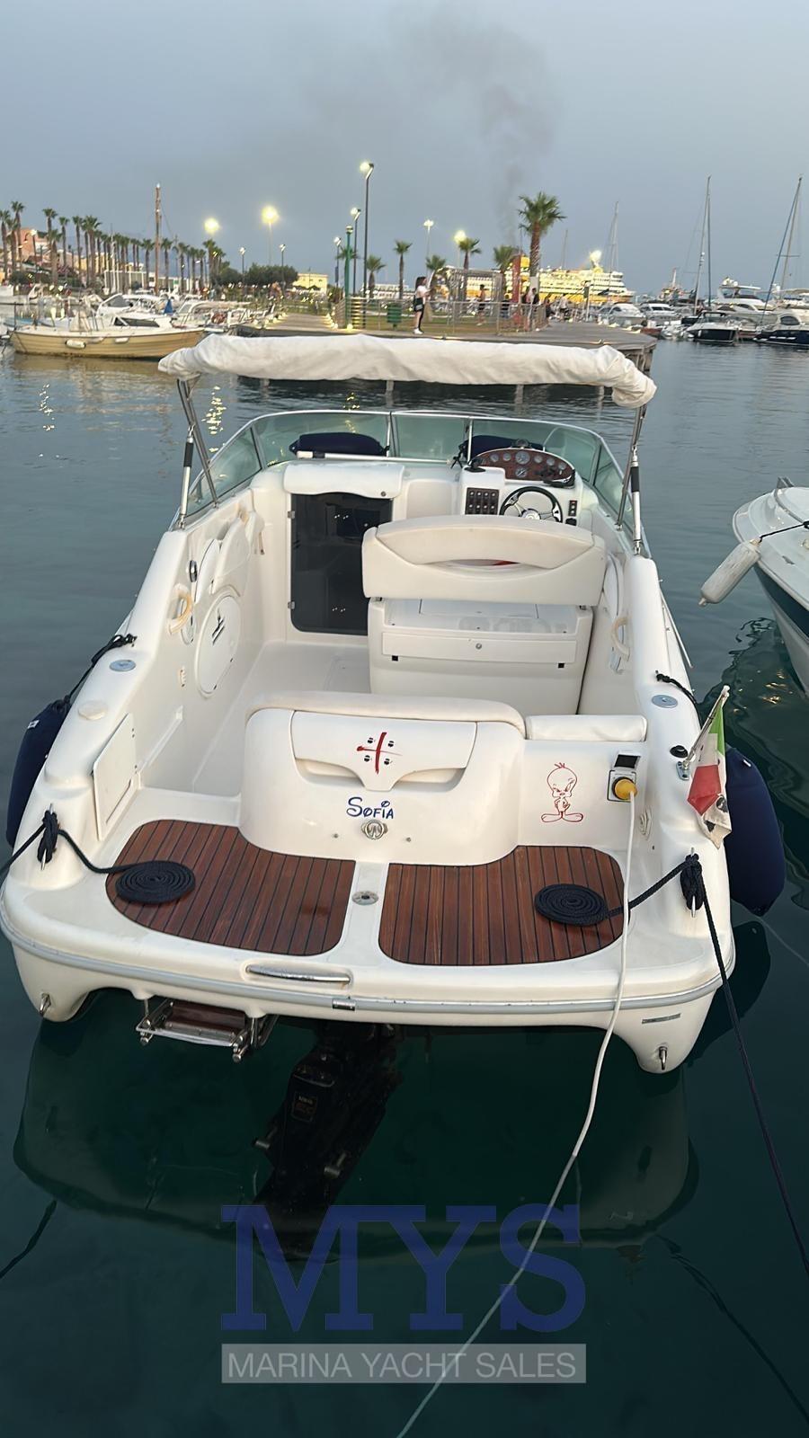 Predominano le linee morbide e arrotondate a bordo dell'Islamorada 23, un piccolo day cruiser ideale per gite giornaliere o brevi crociere sottocosta. Grazie a un bordo libero particolarmente generoso, sottocoperta è stata infatti ricavata una piccola cabina, sufficiente per il pernottamento. La carena a V profonda, con angolo di 31° a prua e di 19° a poppa, presenta due pattini di sostentamento idrodinamico per parte. La motorizzazione, costituita da un motore entrofuoribordo a benzina da 227 cv con iniezione diretta, consente di raggiungere punte di velocità massima decisamente elevate. OTTIME CONDIZIONI GENERALI, AFFARE