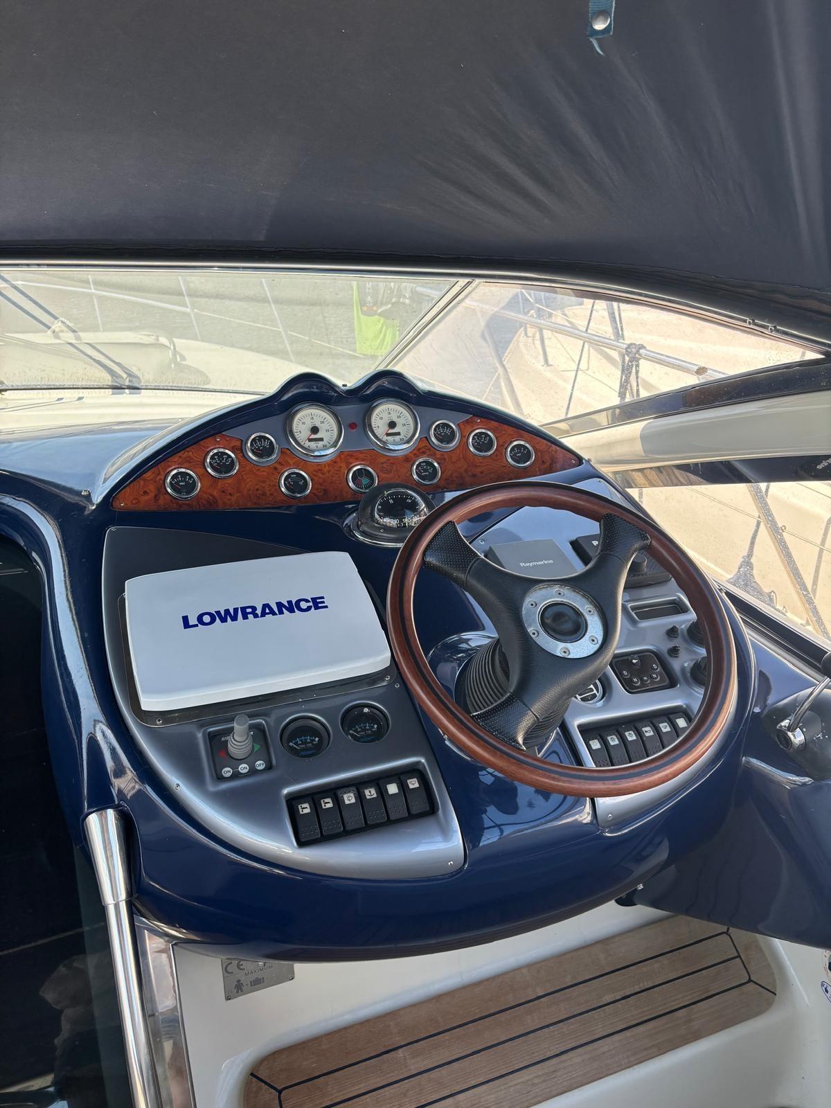 Comando motori elettronico, Ecoscandaglio (Raymarine), Pilota automatico (Raymarine), Plotter con antenna GPS (Lowrance).