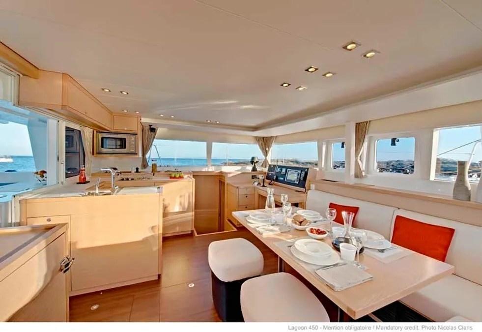 interni Alpi Walnut, Allestimento Essential, Cuscineria, Lazy bag, bracket motore esterno, bimini, ingressi usb nelle cabine,doppia cuccetta in salone, ventilatori in salone e cabine, frigo e freezer aggiuntivi, tende salone ombreggianti, ripostigli sotto letto, cassetta pronto soccorso, 2 squadrette, 1compasso, bandiera 40x60, mezzo marinaio, riflettore radar, bombola gas2,750 pz.2, regolatore gas, tanica gasoliolt.20, tanica miscela lt.10, kit vele, tender 310, kit motore (1 cinghia-1 girante, 2 filtri), set carte zona + 1 portolano, n.1 cartuccia elettronica, spina maschio 16°, set turafalle, faro alogeno, imbuto carburante, motore f.b. yamaha 4T 15CV, ancora di rispetto ammiragliato (0 similare), posate ps.40, batteria di pentole con 1 padella, n.1 colapasta, n.1 grattugia, n.1 macchinetta caffè, n.2 coltelli cucina, n.1 mestolo, n.2 cucchiai legno, n.1 apriscatole, n.1 apribottiglie, piatti piani e fondi pz.20, coperte pz.4, guanciali pz.10, oliera, vassoio, tazze caffè pz.10, tazze latte pz.10, # n.3 contenitori frigo, n.2 brocche, premiagrumi, contenitore sale, zucchero, caffè, tovaglia tavolo, di rispetto, 4 cime d'ormeggio, Desalinatore Schenker Zen 50lt., Climatizzatore Cruisair 48000 BTU, Tv a led 32 + lettore DVD/CD MP3, Passerella in carbonio pieghevole con fodera, Generatore 11KW Oman, Inverter 12/220V - 2000VA