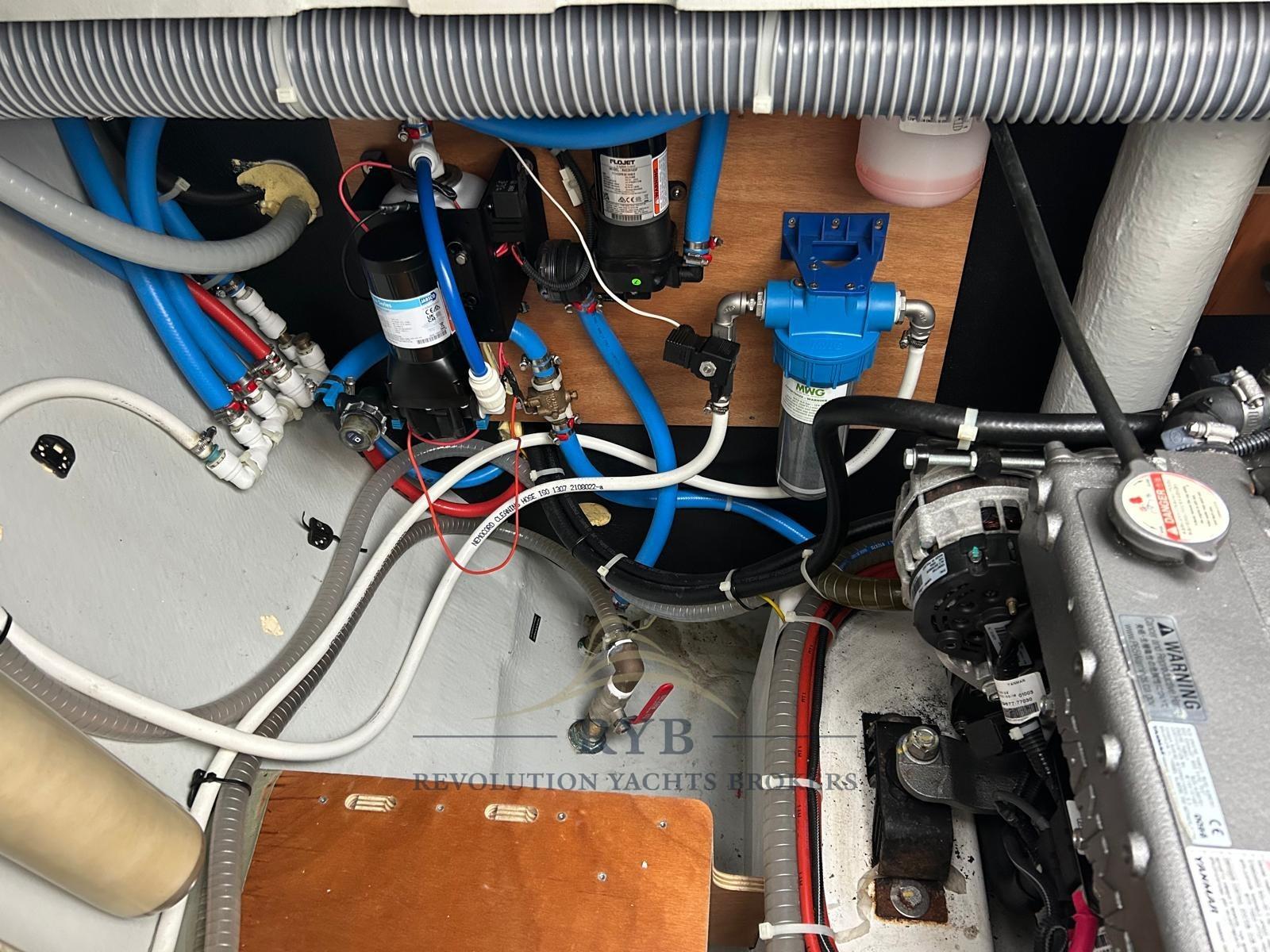 Aria condizionata (TUTTI I LOCALI), Boiler, Dissalatore (200 l/h), Impianto acque nere, Pavimento interno in legno, Prese interne 12v, Prese interne 220v, Serbatoio Acque Nere, Telecamera, WC marino elettrico.