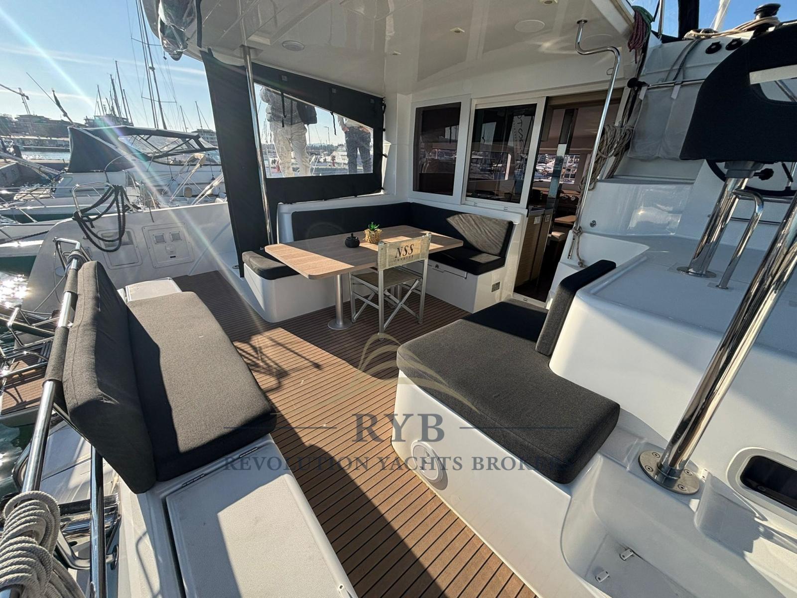 Autoclave, Gruette per tender, Luci di cortesia, Pannelli Solari, Piattaforma (teak sintetico), Porta ingresso, Pozzetto Teak, Presa 220V banchina, Salpa Ancore Elettrico, Scaletta da bagno, Tavolo pozzetto, Winch Elettrico (HARKEN).