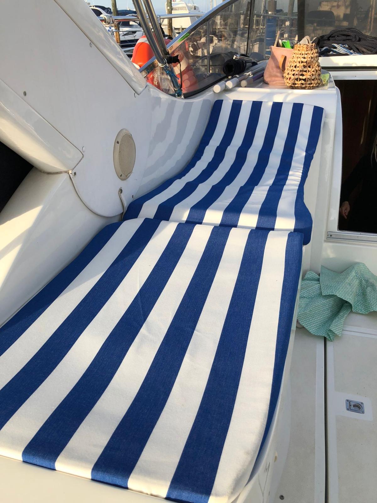 2025 nuovo teack sintetico alta qualita' nella spiaggetta - nuova tappezzeria esterna (sedute pozzetto, prendisole di poppa e prua ) con doppia tappezzeria di rivestimento "bianca in ecopelle come in origine piu' il rivestimento in materiale oleo idro " - sostituzione pompa elettrica dei 2 wc - nuovo caricabatterie -