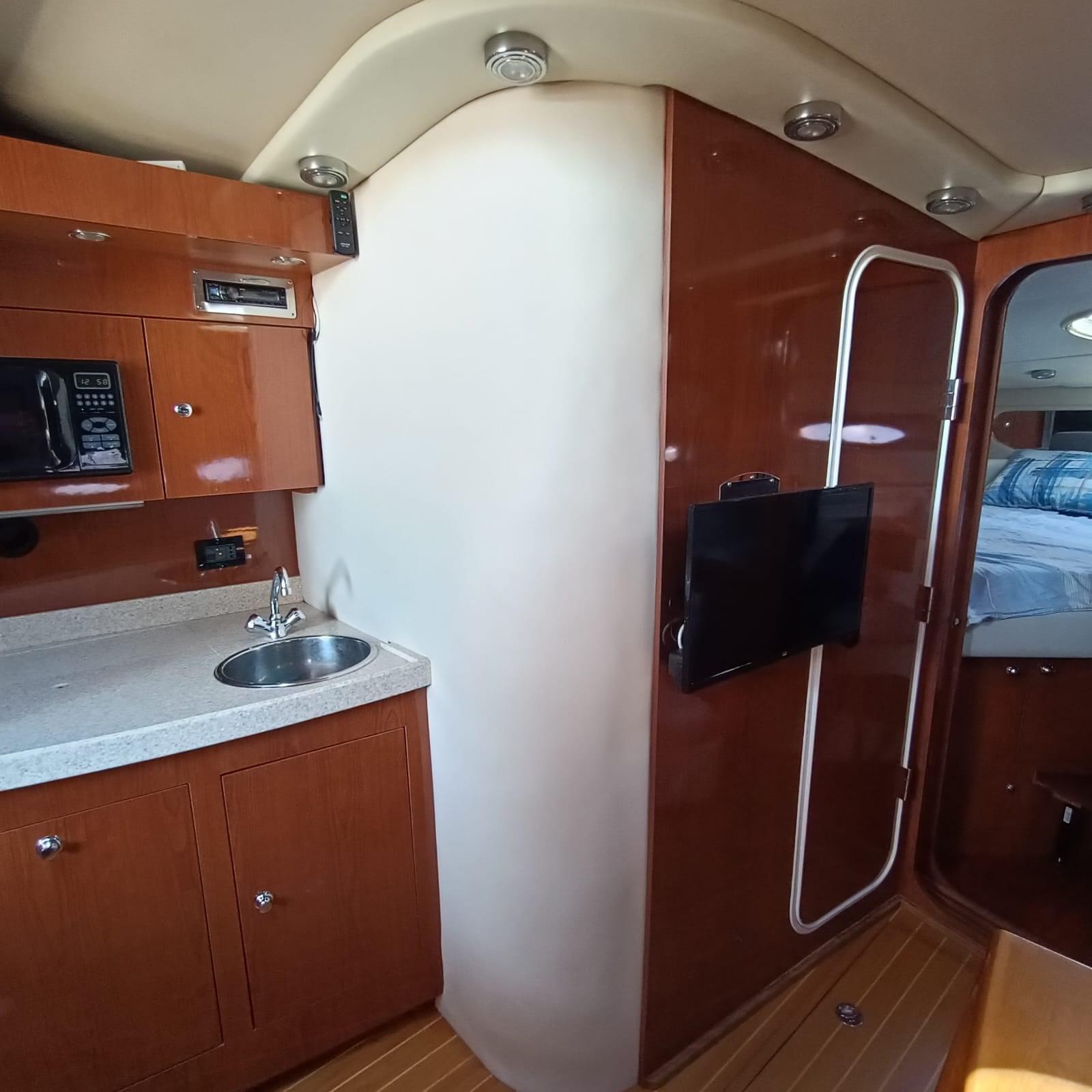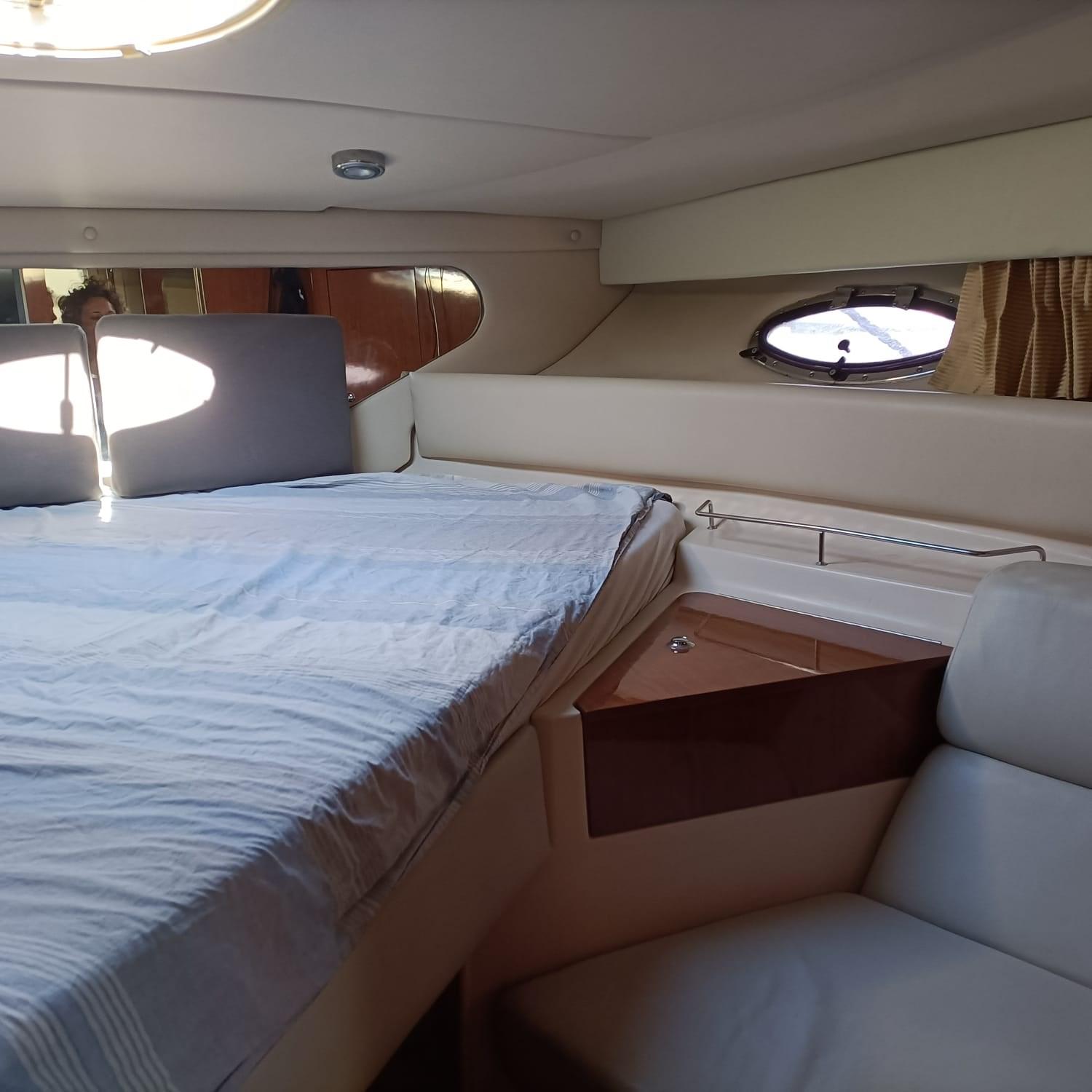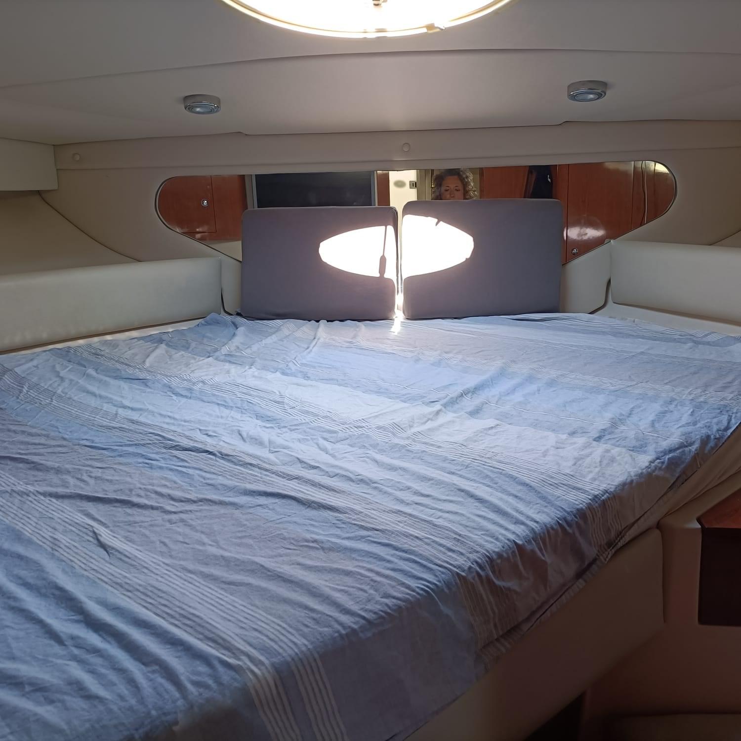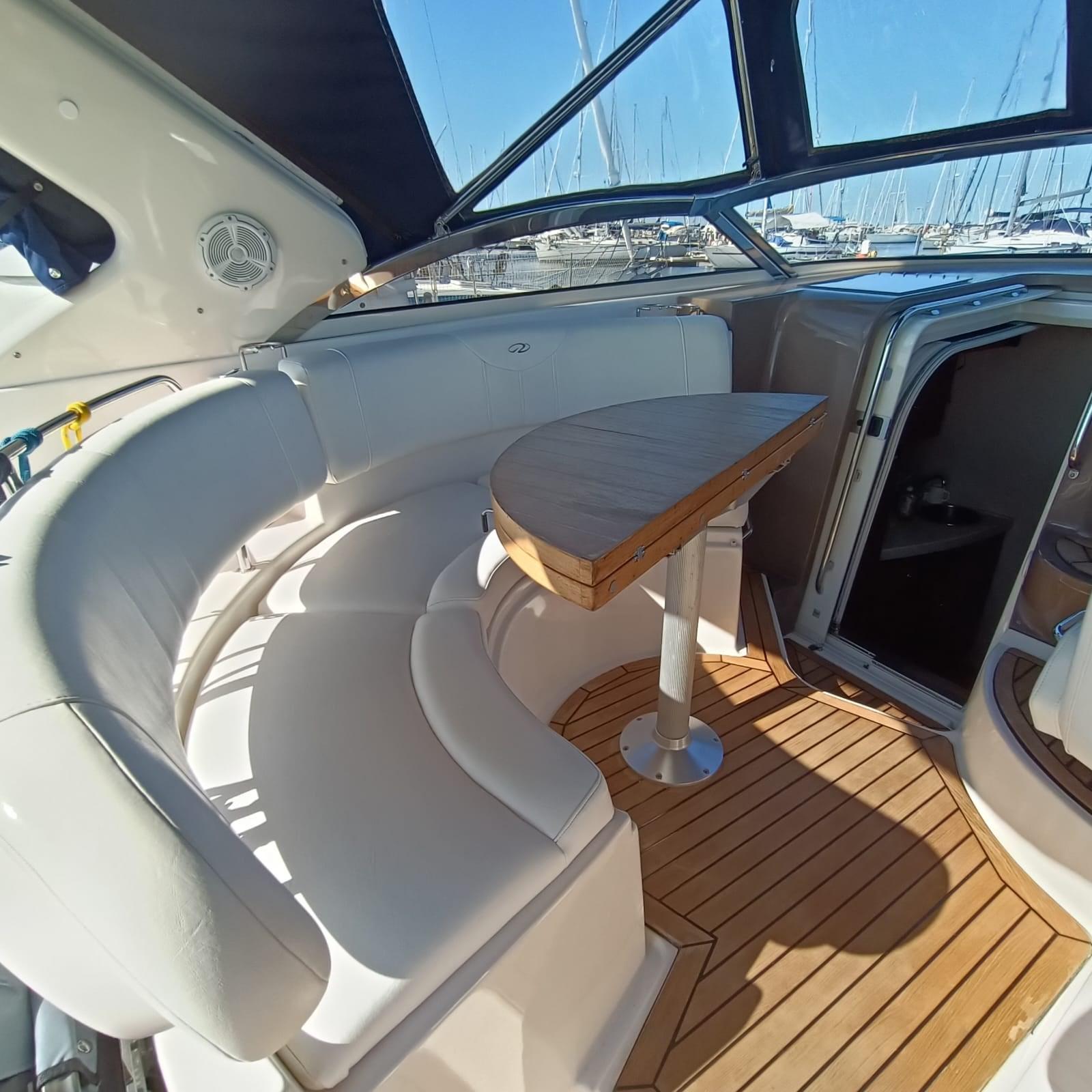 cuscineria rinnovata, cucina interna ed esterna, frigo, forno, elica di prua, autopilota, motori Volvo Penta Kad 300 e strumentazione completa.