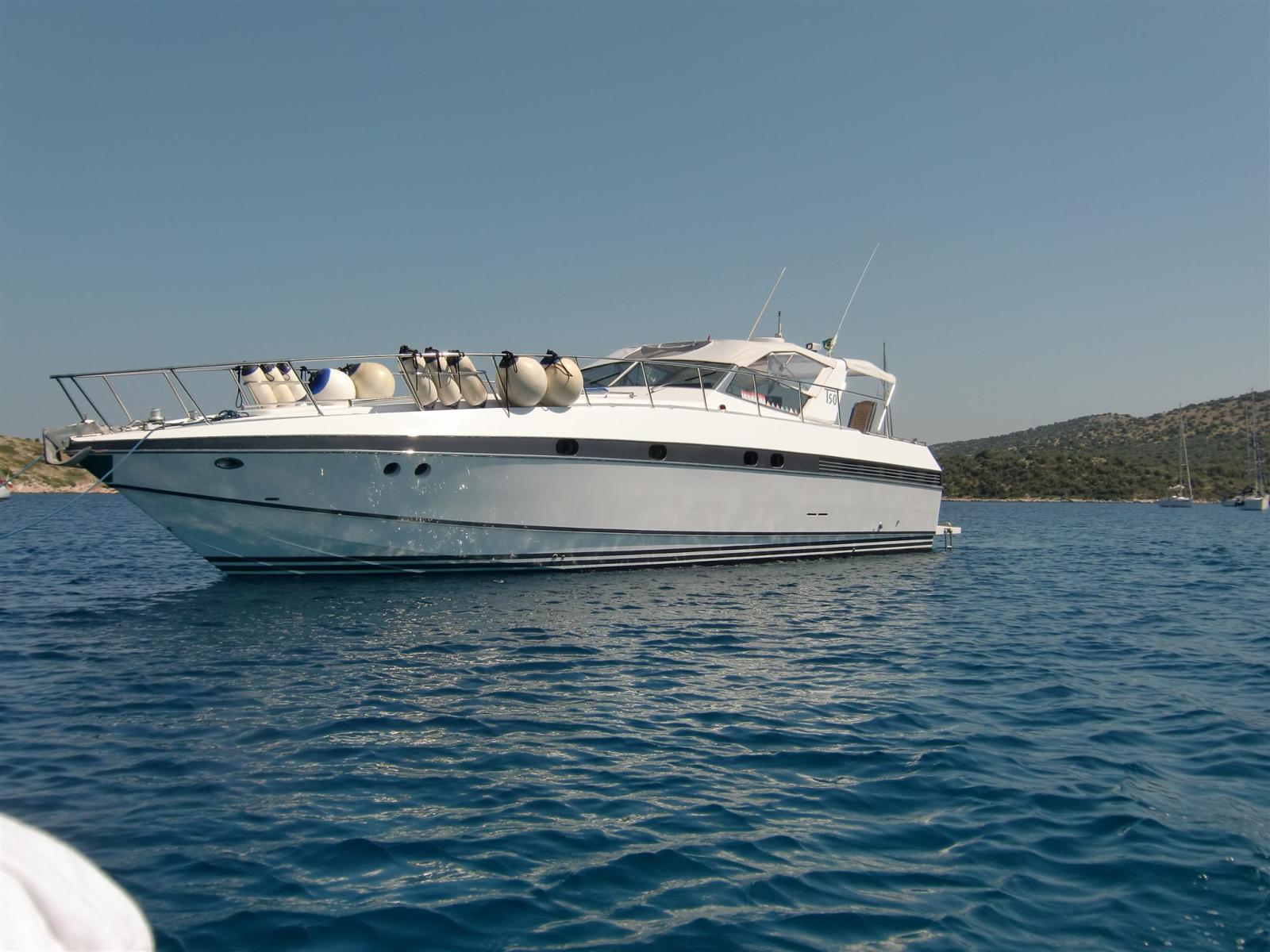Allarme motore, Autoclave, 4 Batterie (agm), Doccia esterna, Flap idraulici, Indicatori Flaps, Passerella (idraulica), Piattaforma (maggiorata), Pompa di sentina automatica, Porta ingresso, Presa 220V banchina, Presa acqua banchina, Raddrizzatore, Rollbar, Salpa Ancore Elettrico, Scaletta da bagno, Tavolo pozzetto, Tavolo Salone Abbattibile, Tender, Tromba (+ fuoribordo Yamaha 9CV), Winch tonneggio di poppa, Winch tonneggio di prua.