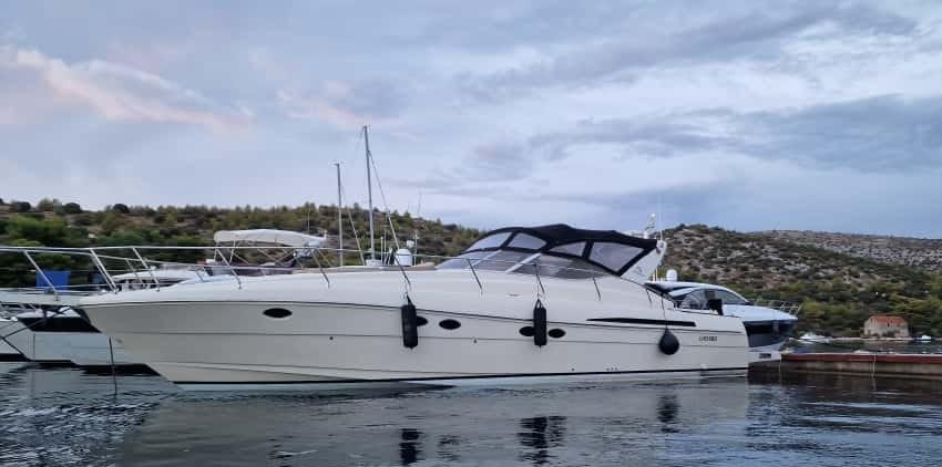 Allarme motore, Autoclave, Doccia esterna (acqua calda/fredda), Flap idraulici, Indicatori Flaps, Lavandino nel Pozzetto, Luci di cortesia, Passerella (idraulica besenzoni con telecomando), Piattaforma (in teak), Pompa di sentina automatica, Porta ingresso, Pozzetto Teak, Presa 220V banchina, Presa acqua banchina, Rollbar, Salpa Ancore Elettrico (con telecomando), Scaletta da bagno, Tavolo pozzetto, Tromba.