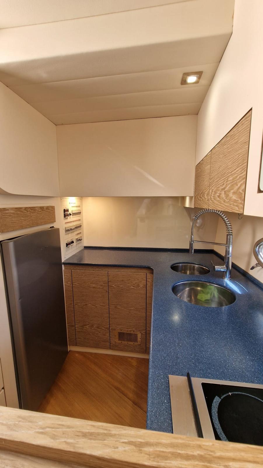 Acqua Calda, Aria condizionata (in tutti gli ambienti), Boiler (elettrico), Cassaforte, Indicatore del serbatoio del carburante, Indicatore del Serbatoio dell’Acqua, Pavimento interno in legno, Prese interne 12v, Prese interne 220v, 2 WC marino elettrico.