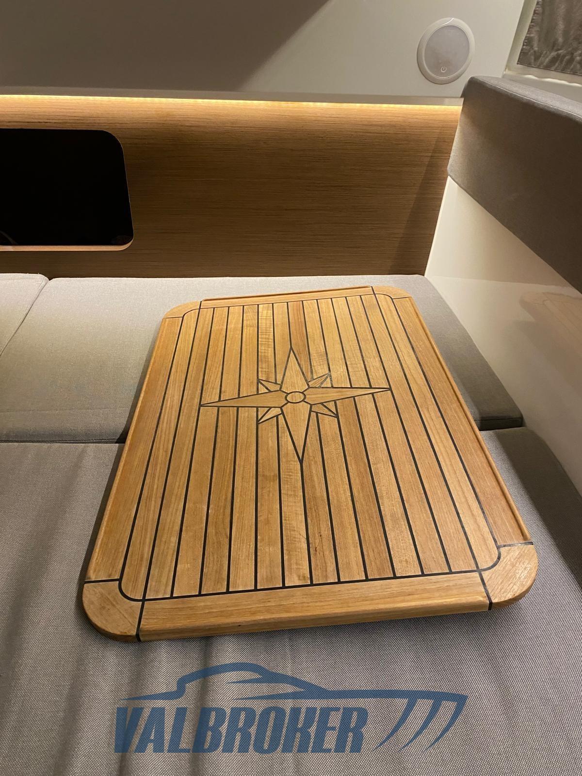 Autoclave, 3 Batterie, Camminamenti laterali in teak, Doccia esterna, Faro orientabile (manuale), Impianto antincendio, Indicatori Flaps (Lenco), Luci di cortesia, Passerella (manuale pieghevole in teak), Pompa di sentina automatica, Pozzetto Teak, Salpa Ancore Elettrico, Scaletta da bagno, Tavolo pozzetto (teak), Tender (con motore fuoribordo).
