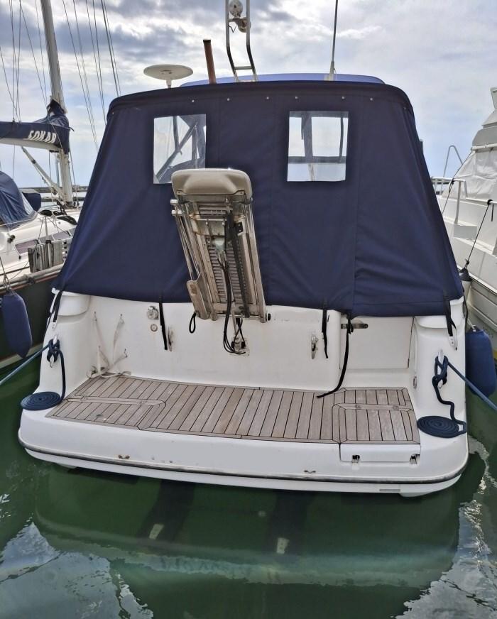 Interni rovere chiaro e pelle ocra; manette elettroniche; contacatena; eliche duo prop; 2021 NUOVO: cuscineria esterna;2022 NUOVO: piede sinistro; 2025 NUOVO: Plancetta e pozzetto in teak massello, piede destro ; 2026 NUOVO : annotazioni sicurezza scad. 3/2031, cappottina e chiusura totale, tagliando motori e antivegetativa; amediazione del 5% +IVA 22% a carico dell'acquirente (IVA si calcola sull' importo della mediazione).