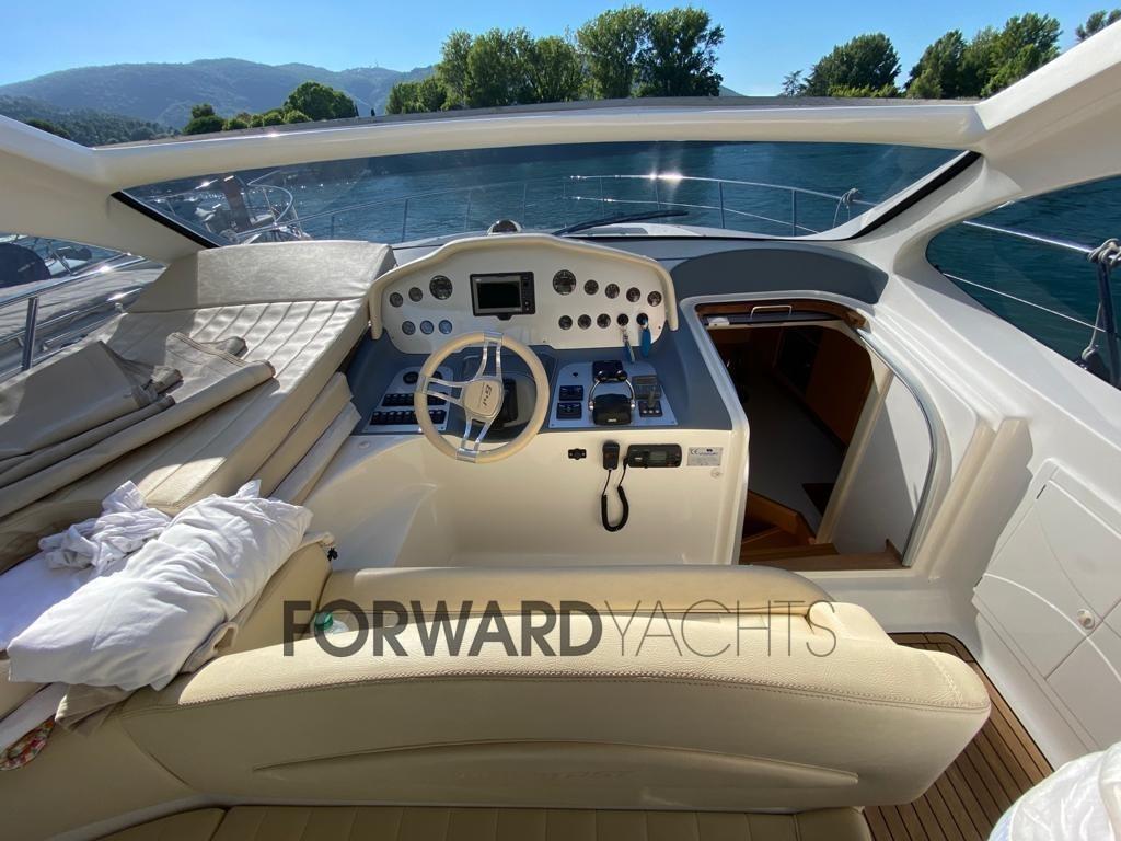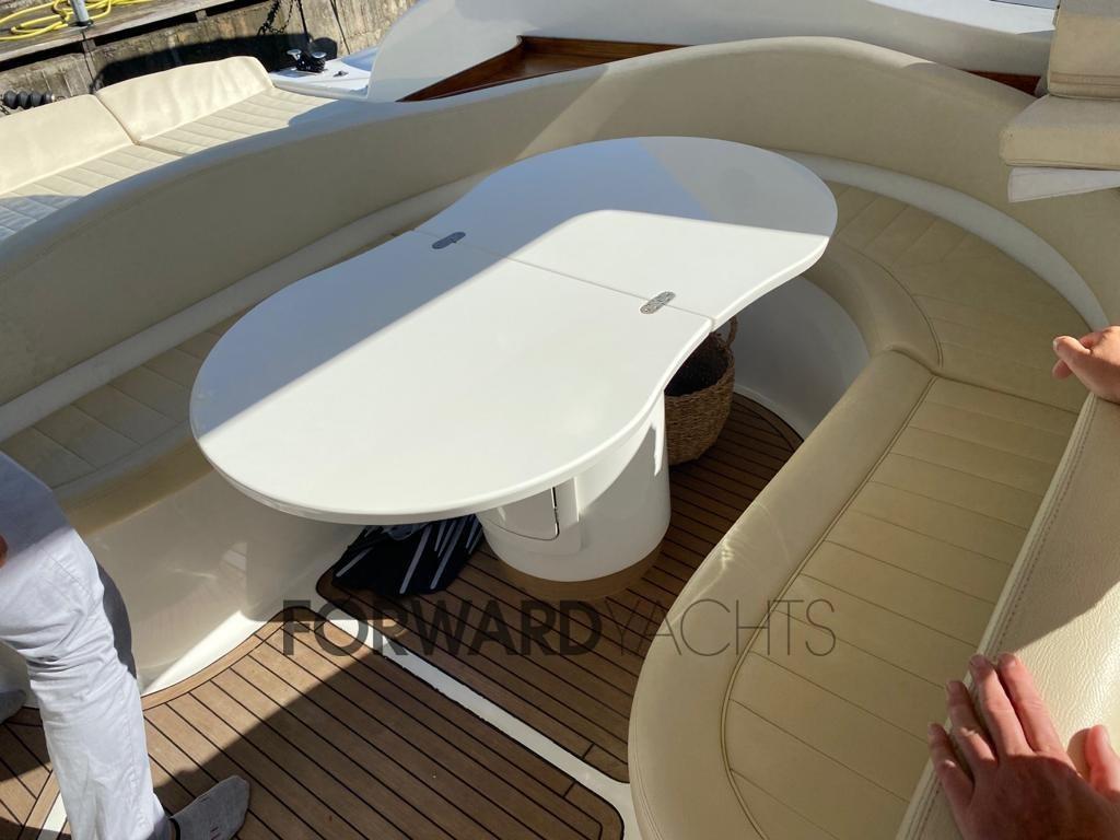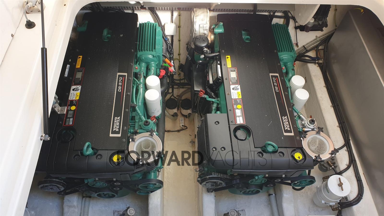Motorizzazione Volvo Penta, 590 ore moto circa e full optional : elica di prua, generatore, aria condizionata, pozzetto in teak, passerella idraulica, cuscineria completa, hard to elettrico, pilota automatico.