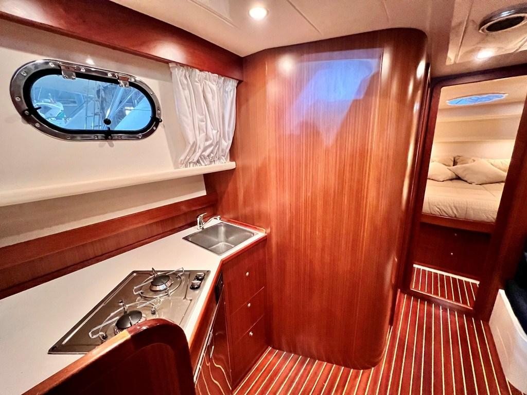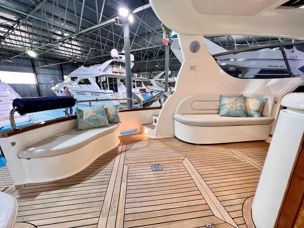 Autoclave, Colorazione speciale (Fiancate Blu Navi), Doccia esterna, Flap elettrici, Hard top (Apribile), Impianto antincendio, Piattaforma (con calpestio in teach), Pompa di sentina automatica, Ponte in teak, Porta ingresso, Pozzetto Teak, Presa 220V banchina, Salpa Ancore Elettrico, Tavolo pozzetto, Tavolo Salone Abbattibile (trasfromabile in cuccetta), Winch tonneggio di prua.