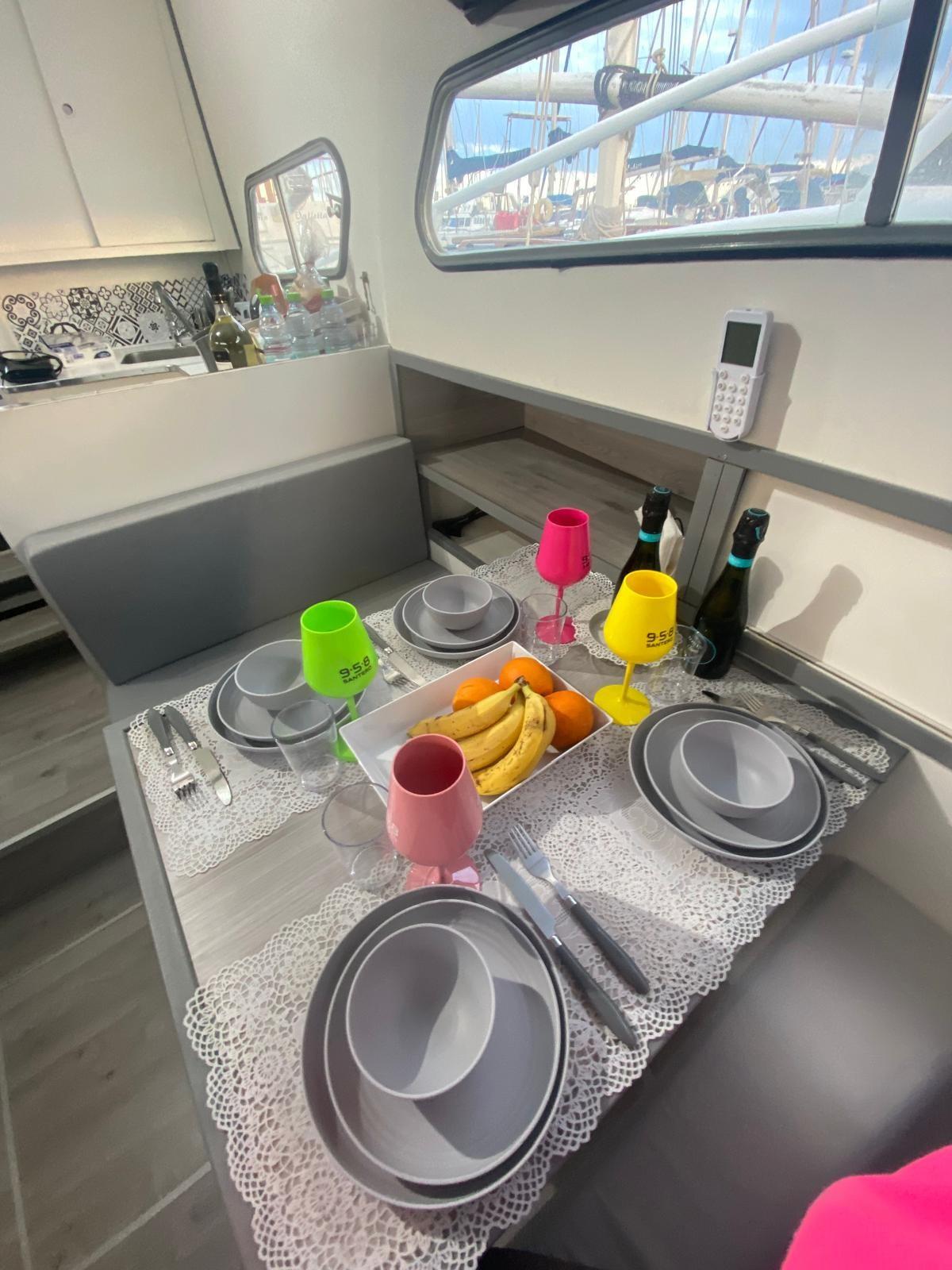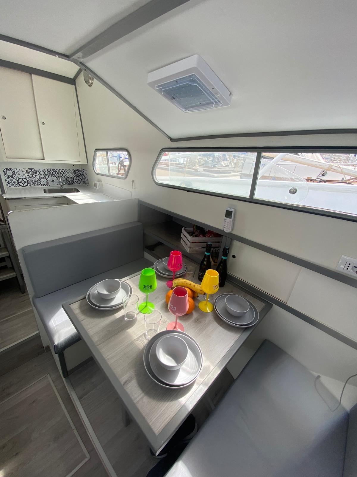 Allarme motore, Allarme sentina, Autoclave, Cavo corrente di banchina, Colorazione speciale (Grigio ferro), Doccia esterna, Fari fissi a poppa, Flap elettrici, Indicatori Flaps, Luci di cortesia, Piattaforma, Pompa di sentina automatica, Porta ingresso, Pozzetto aperto, Presa 220V banchina, Salpa Ancore Elettrico, Scaletta da bagno, Tavolo Salone Abbattibile, Tromba.