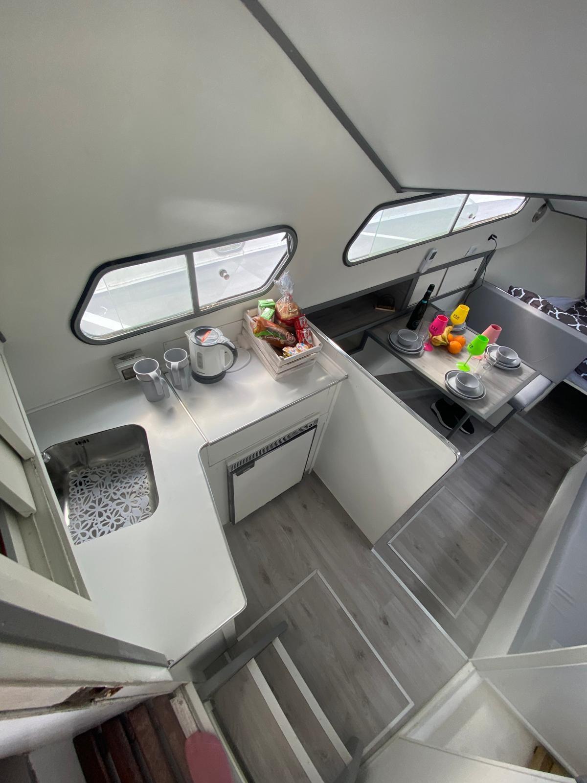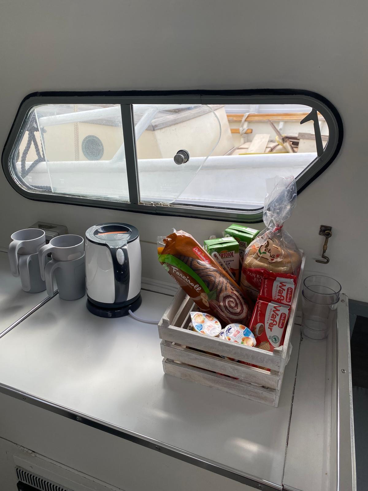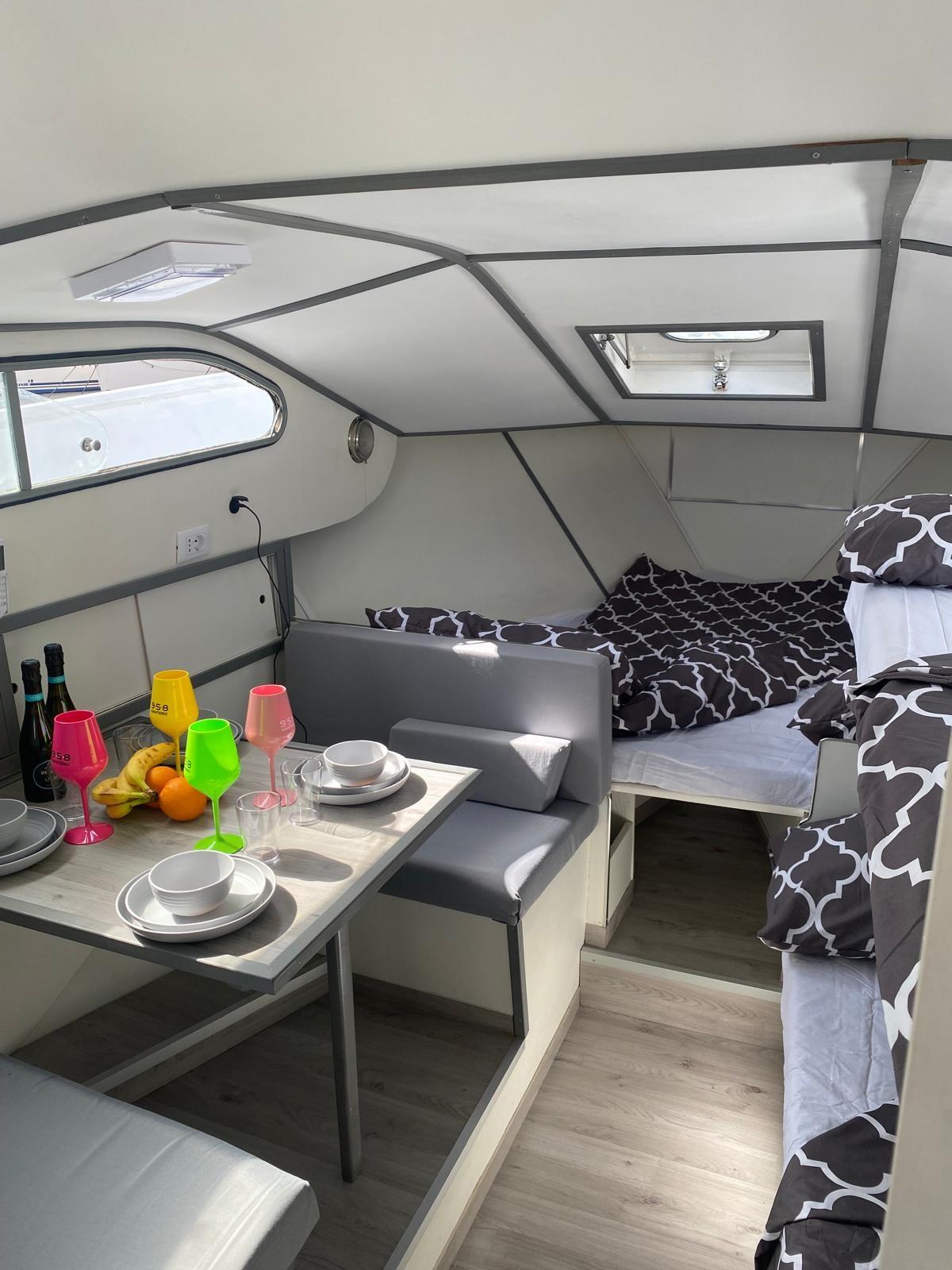 Acqua Calda, Boiler, Indicatore del serbatoio del carburante, Pavimento interno in legno, Prese interne 12v, Prese interne 220v, WC marino elettrico.