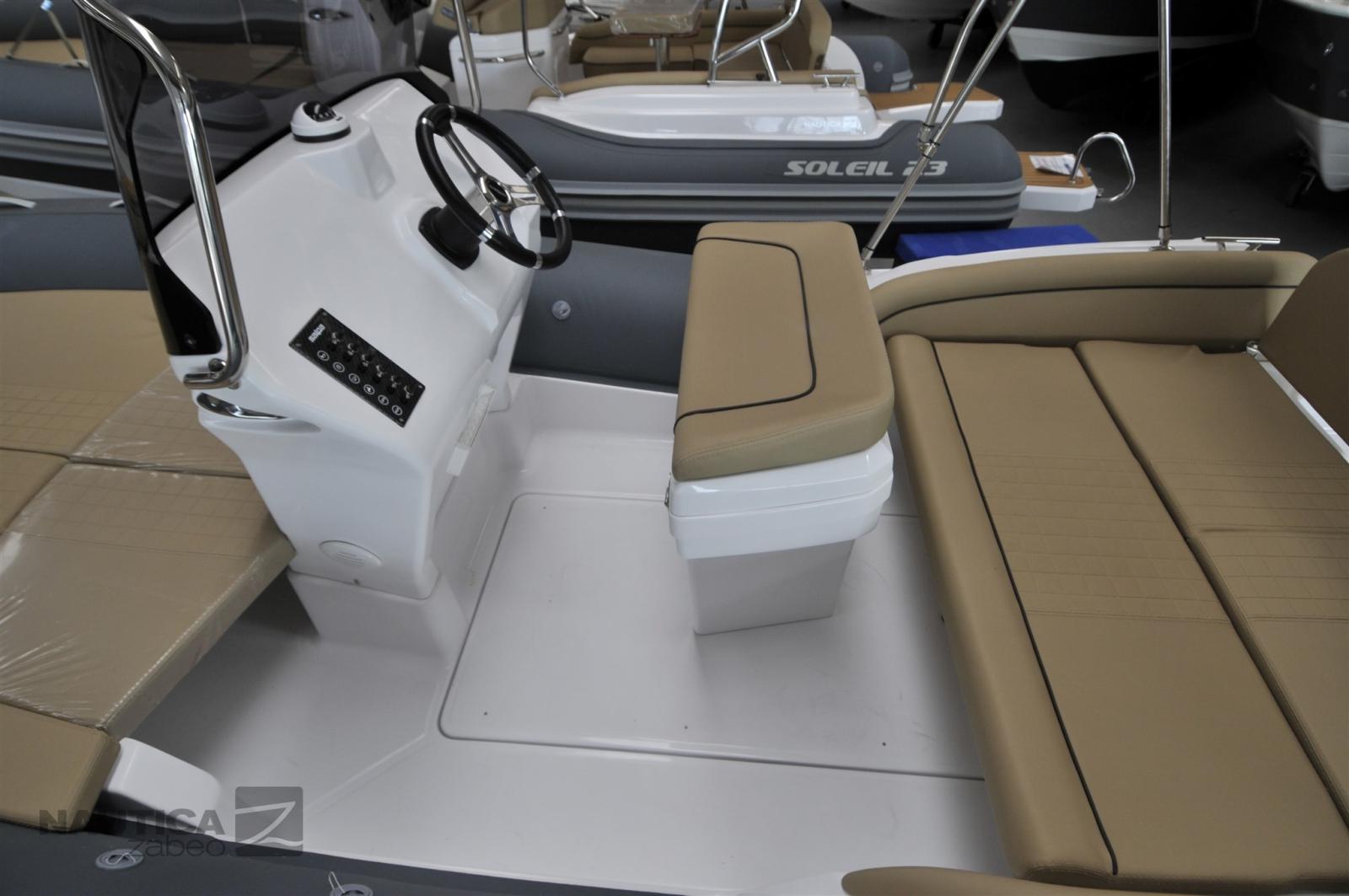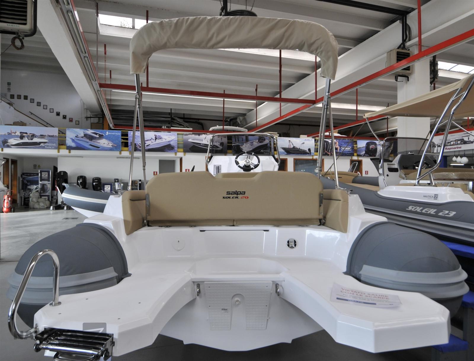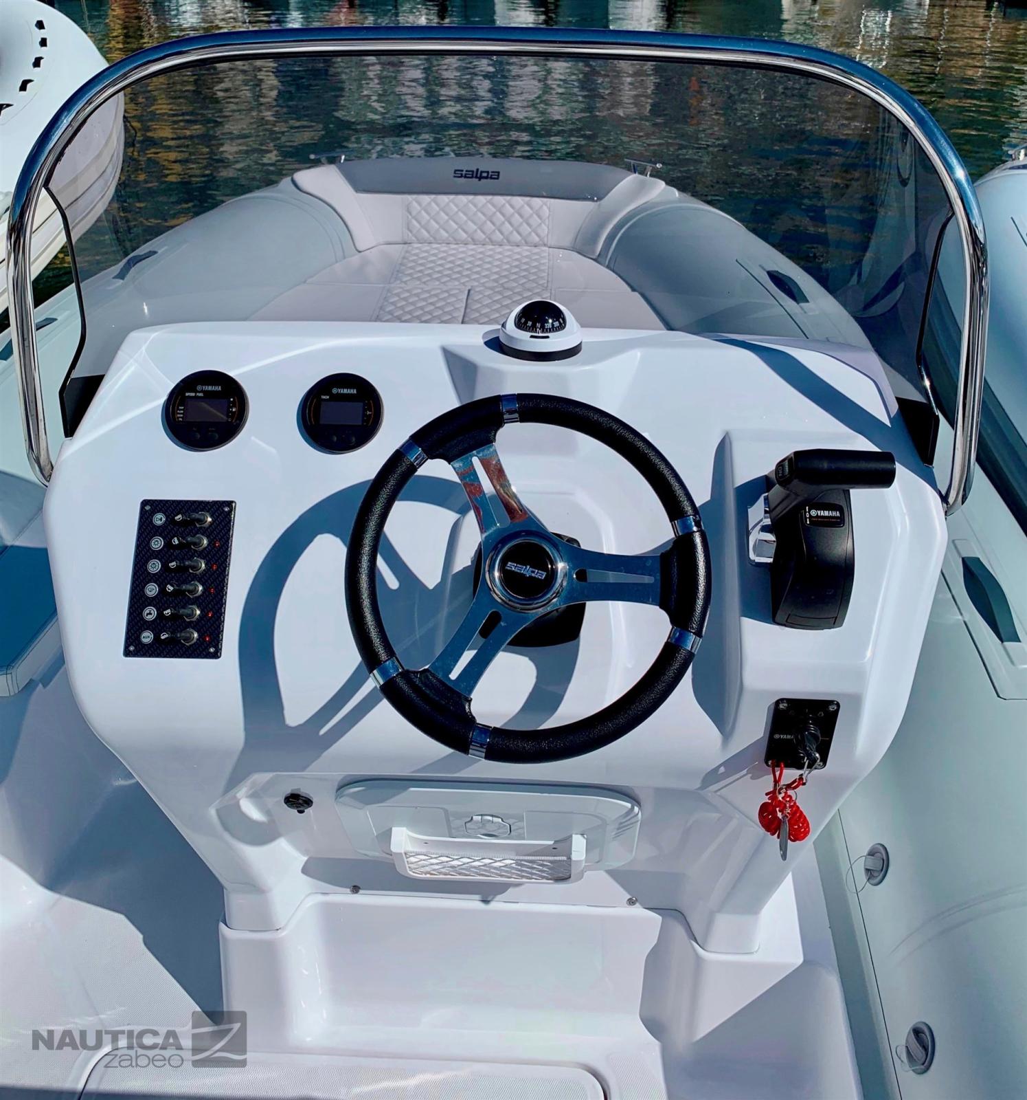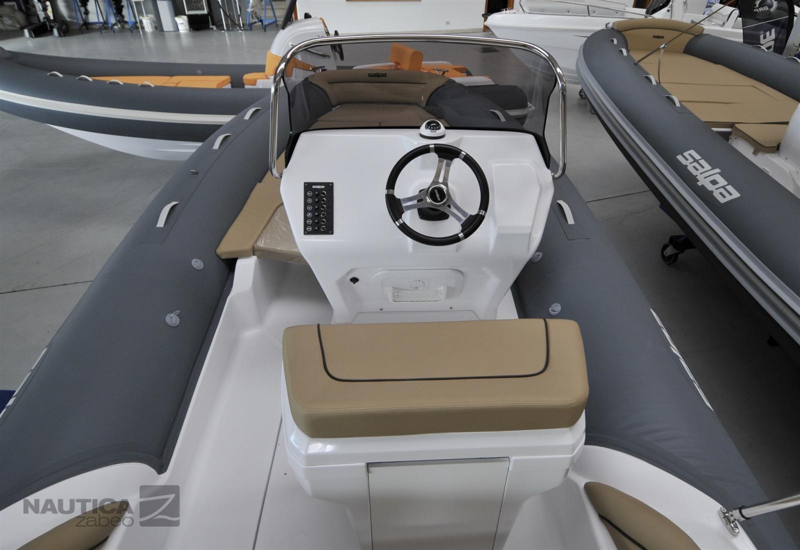 Accessori standard: 3 Ganci traino e ormeggio, 4 bitte in acciaio inox, bussola, consolle guida sport edition, cuscineria completa a cellule chiuse, gavone ancora con portello e rullo, gavone sotto il divano di poppa, gavoni sotto prendisole di prua, impianto elettrico completo, parabrezza con girocassero inox, plancette poppa VTR, pompa di sentina elettrica automatica, quadretto elettrico al cruscotto, scaletta mare inox a scomparsa, tromba elettrica, tubolari colore a scelta con bottazzo , luci di navigazione, vano porta-batteria, stacca-batteria, volante Salpa a 3 razze e gonfiatore manuale.