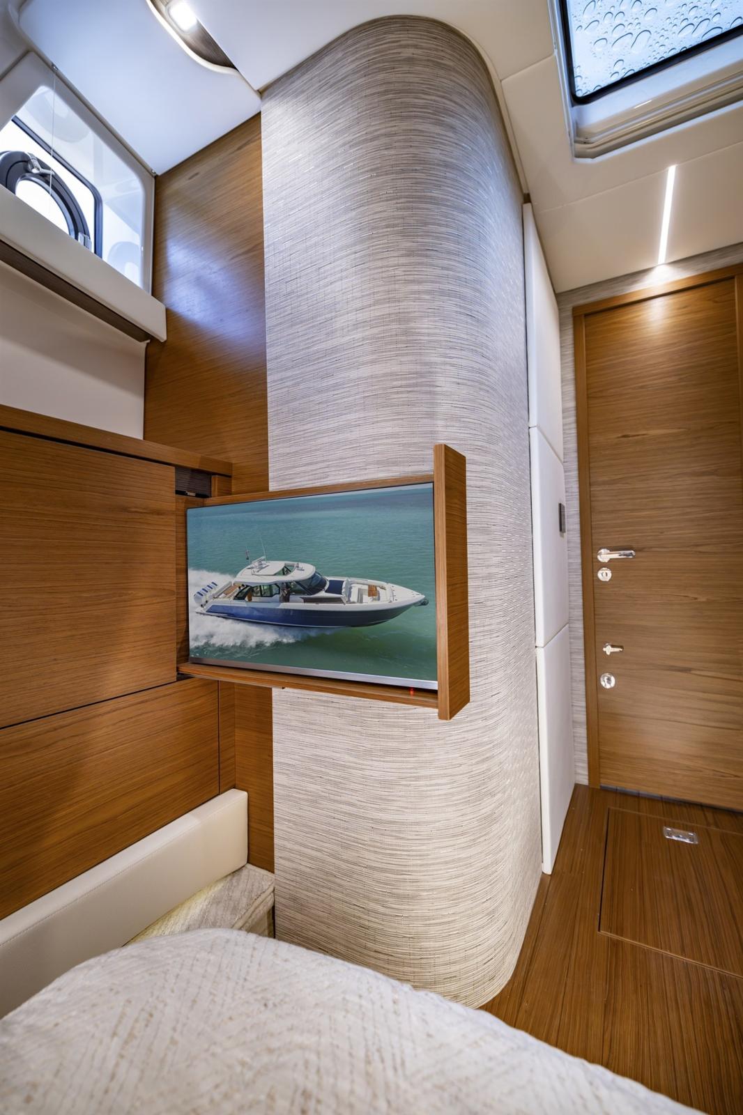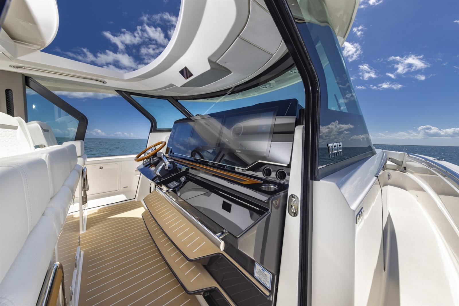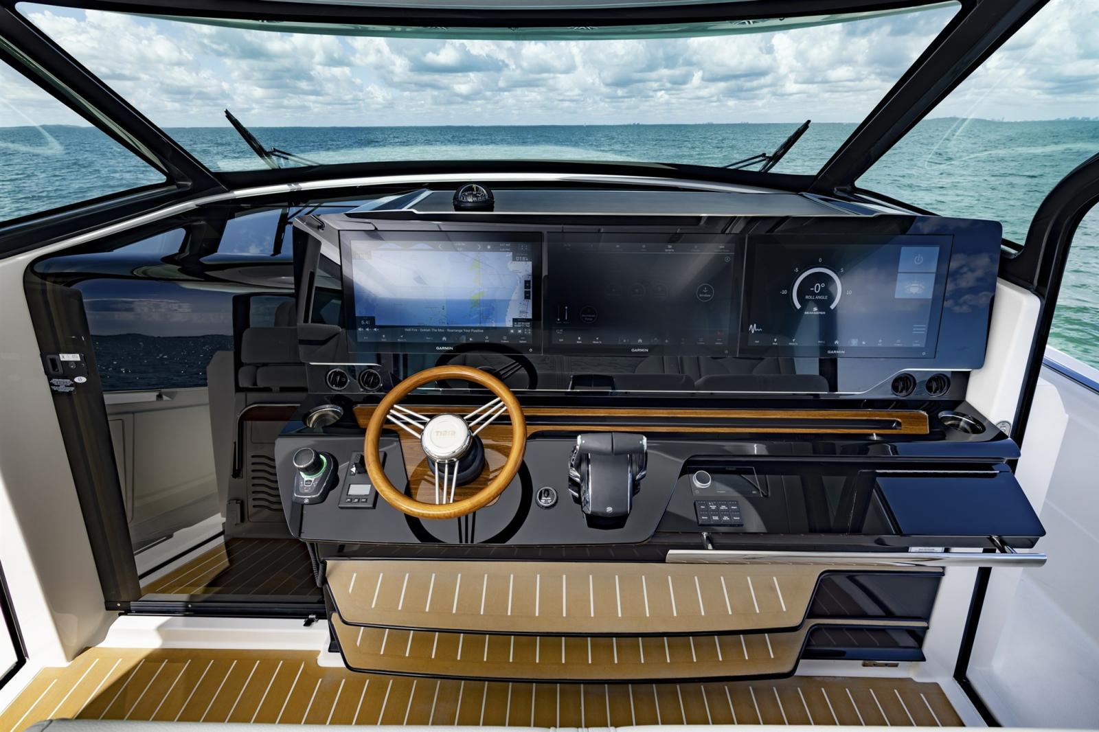 Angolo barra, Antenna radar (Garmin, Open Array), Bussola (Ritchie SuperSport), Comando motori elettronico (Mercury), Computer di bordo (Mercury), Contamiglia (Garmin), Ecoscandaglio (Garmin), GPS (Garmin), Joystick (Mercury JPO), Pilota automatico (Mercury), 3 Plotter (Garmin Touch), Radio VHF (Garmin), Sedile Copilota.