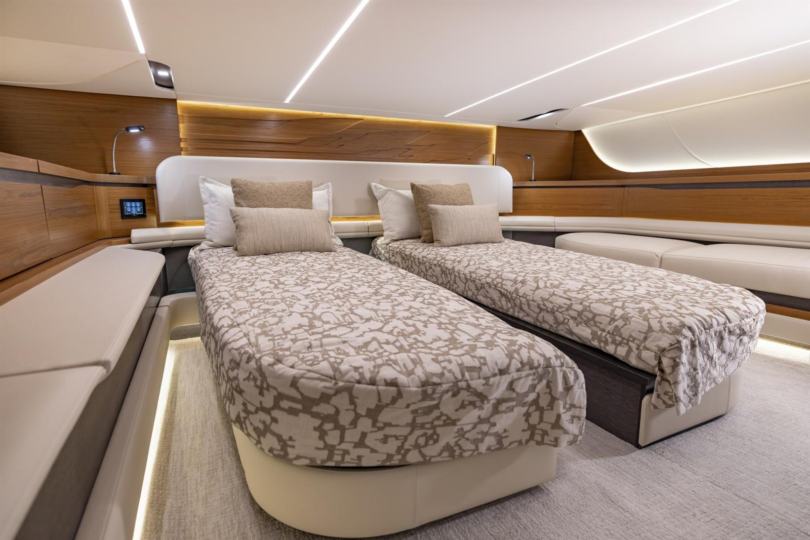Allarme fumo/gas, 4 Allarme motore, Allarme sentina, Colorazione speciale (a scelta, standard), Doccia esterna, Flap elettrici (Zipwake Dynamic Trim control system), Hard top (elettrico), Impianto antincendio, Indicatori Flaps, Lavaggio catena, Lavandino nel Pozzetto, Luci di cortesia, Luci subacquee, Piattaforma, 3 Pompa di sentina automatica, Porta ingresso, Presa 220V banchina, Presa acqua banchina, Raddrizzatore, Salpa Ancore Elettrico, Scaletta da bagno, Tavolo pozzetto, Tientibene con cancelletti, Tromba.